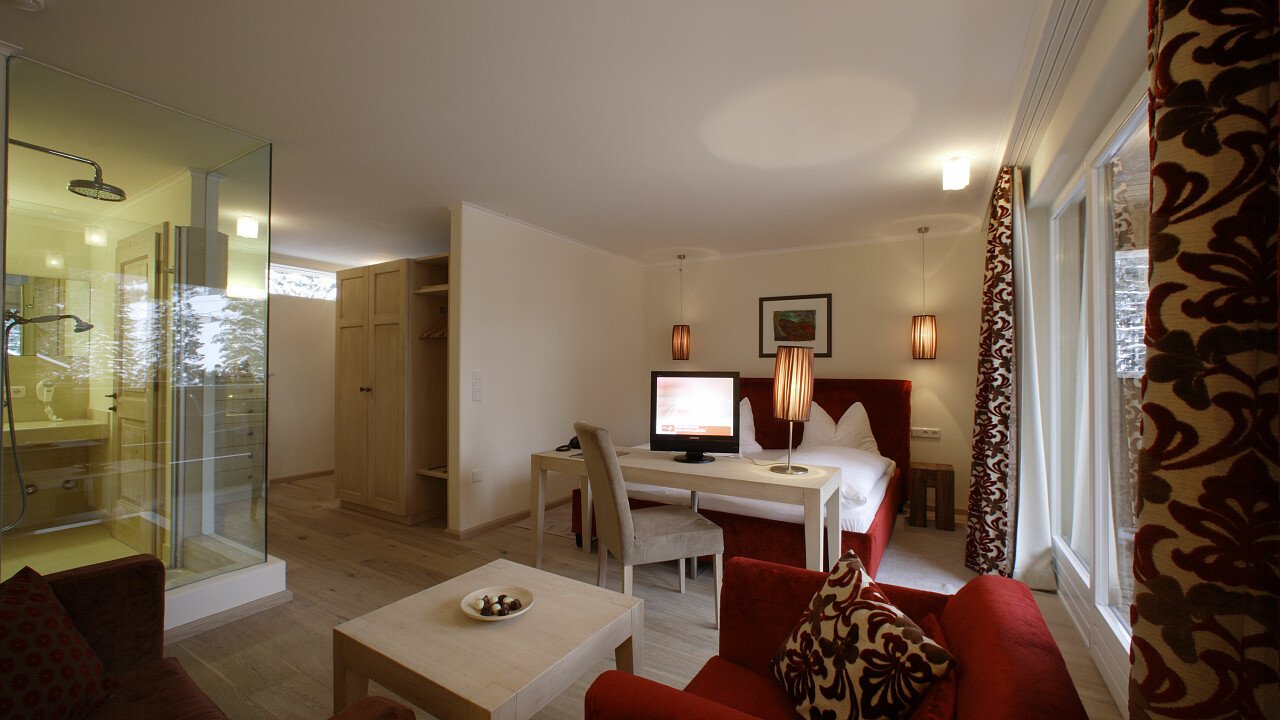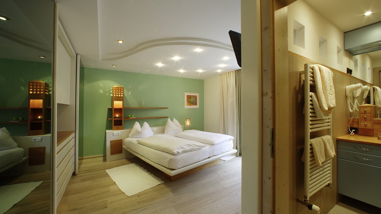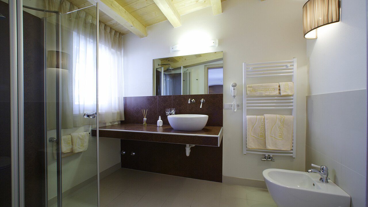 This new facility, built in natural materials, boasts very cozy interiors. The design rooms are furnished in wood and provided with sat TV, Wi-Fi, hairdryer and safe. Most have also a panoramic balcony, whereas the superior rooms feature a private sauna.