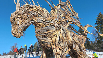 Don't miss the Dragon Trail, a simple 45-minute walk from the hamlet of Gionghi di Lavarone that takes you to this new work of art created by artist Marco Martalar using Vaia wood. The Winged Dragon, 6 metres high and 7 metres long, is located in Magré, in the hamlet of Lavarone, in the Alpe Cimbra. It is the largest wooden Dragon in the world. Months of work, 3,000 vines and 2,000 scraps of shrubs, including those of Avez del Prinzep, Europe's tallest 244-year-old silver fir, felled by the fury of the storm.