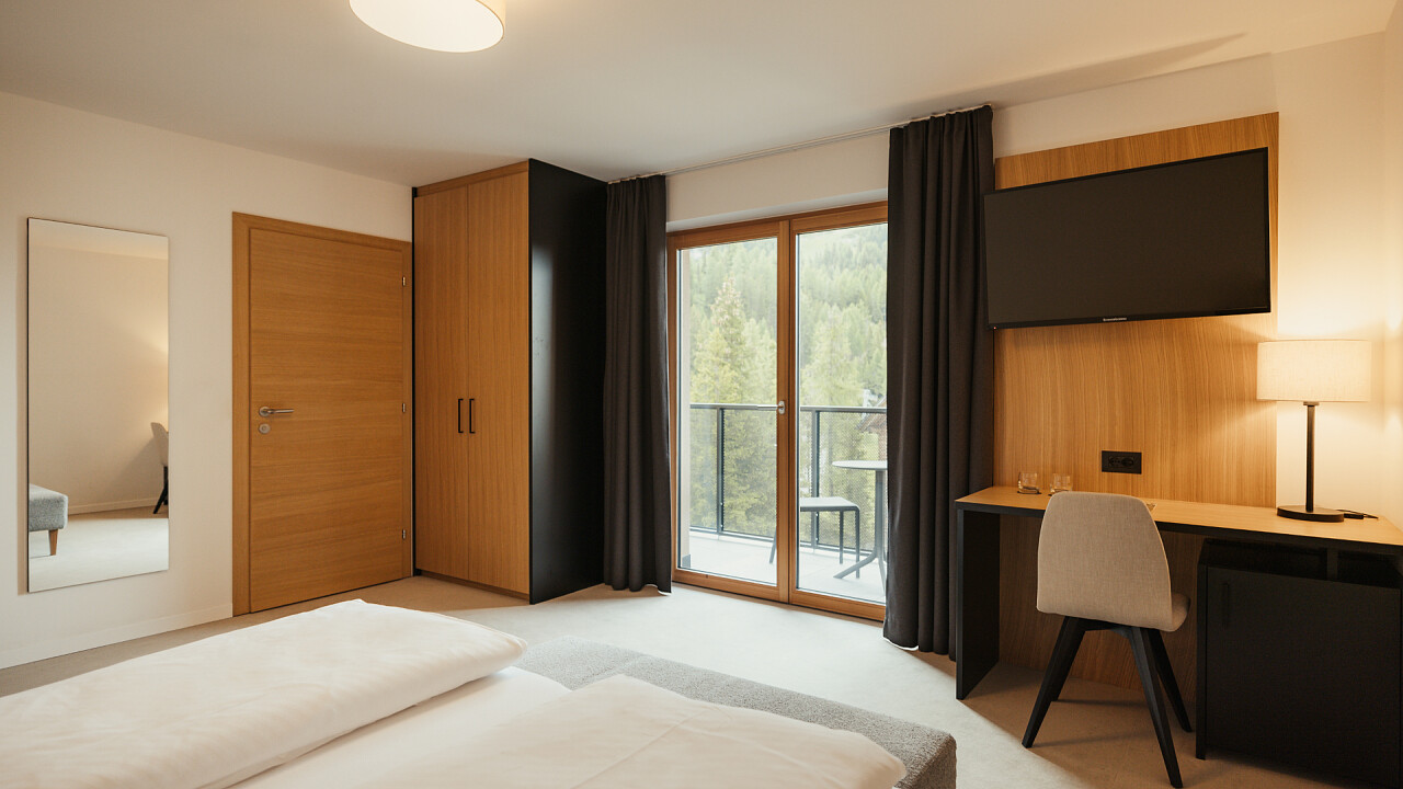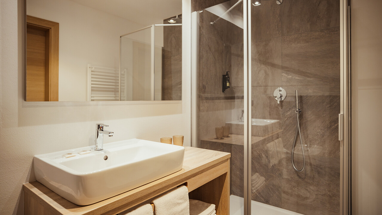 Every single room and suite has been designed with great attention to detail, with the aim of offering you a cosy environment that makes you feel at home away from home; a cosy retreat where you can relax. Furnished with natural materials such as wood and stone and with colours that recall the shades of nature, the rooms are equipped with all comforts. At your disposal: bathrobes, wellness towels and slippers.