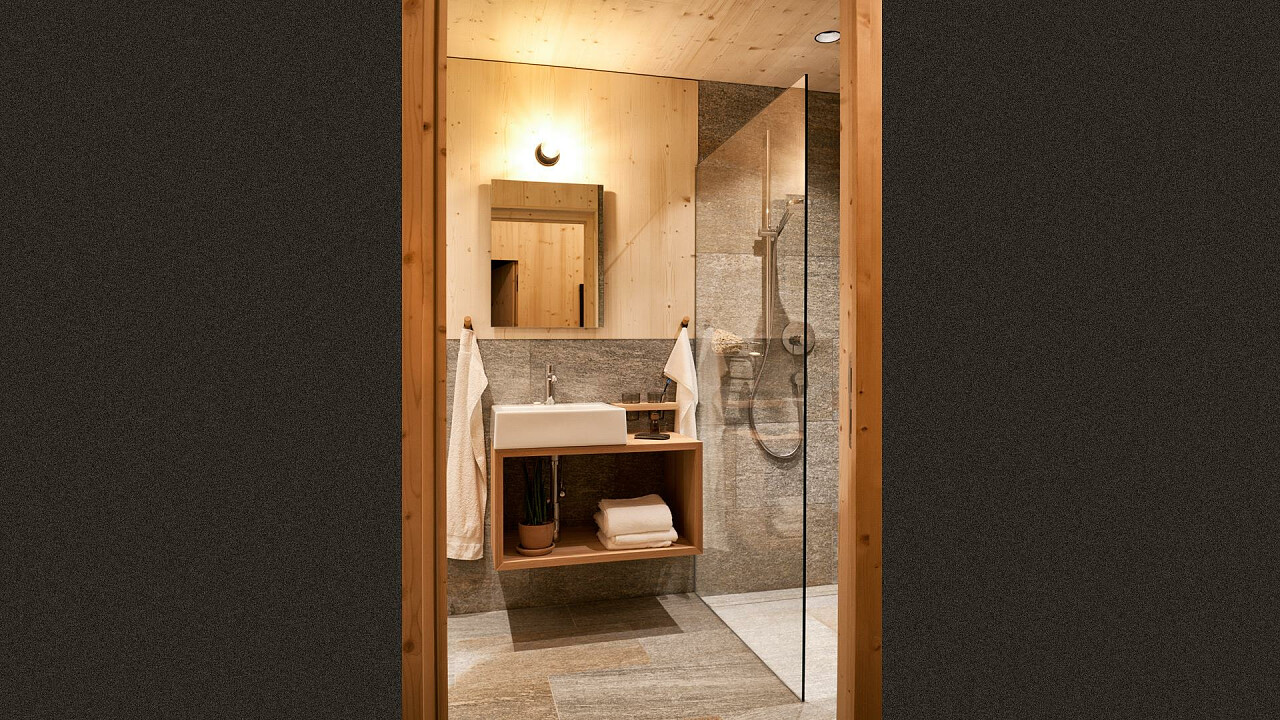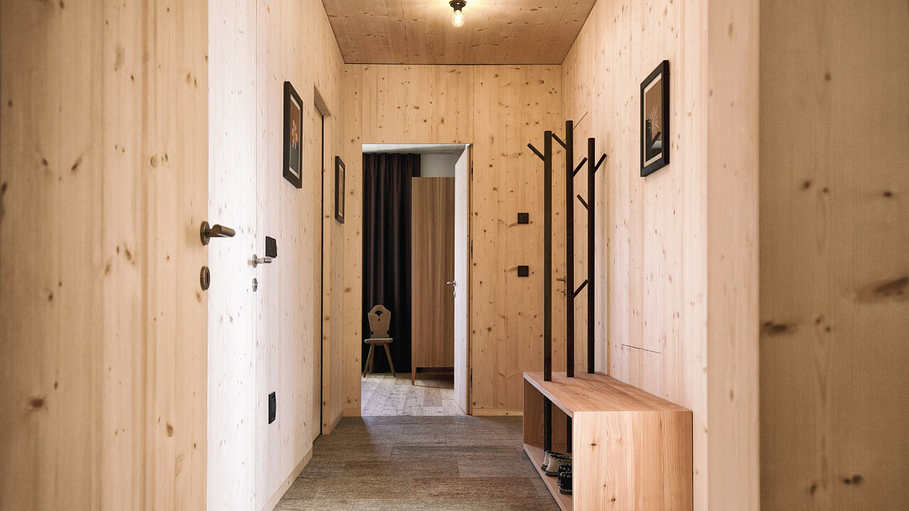 - During construction, clay bricks, lime plaster, untreated and local spruce, larch and pine wood, natural stone slabs made of indigenous gneiss and black steel were chosen.