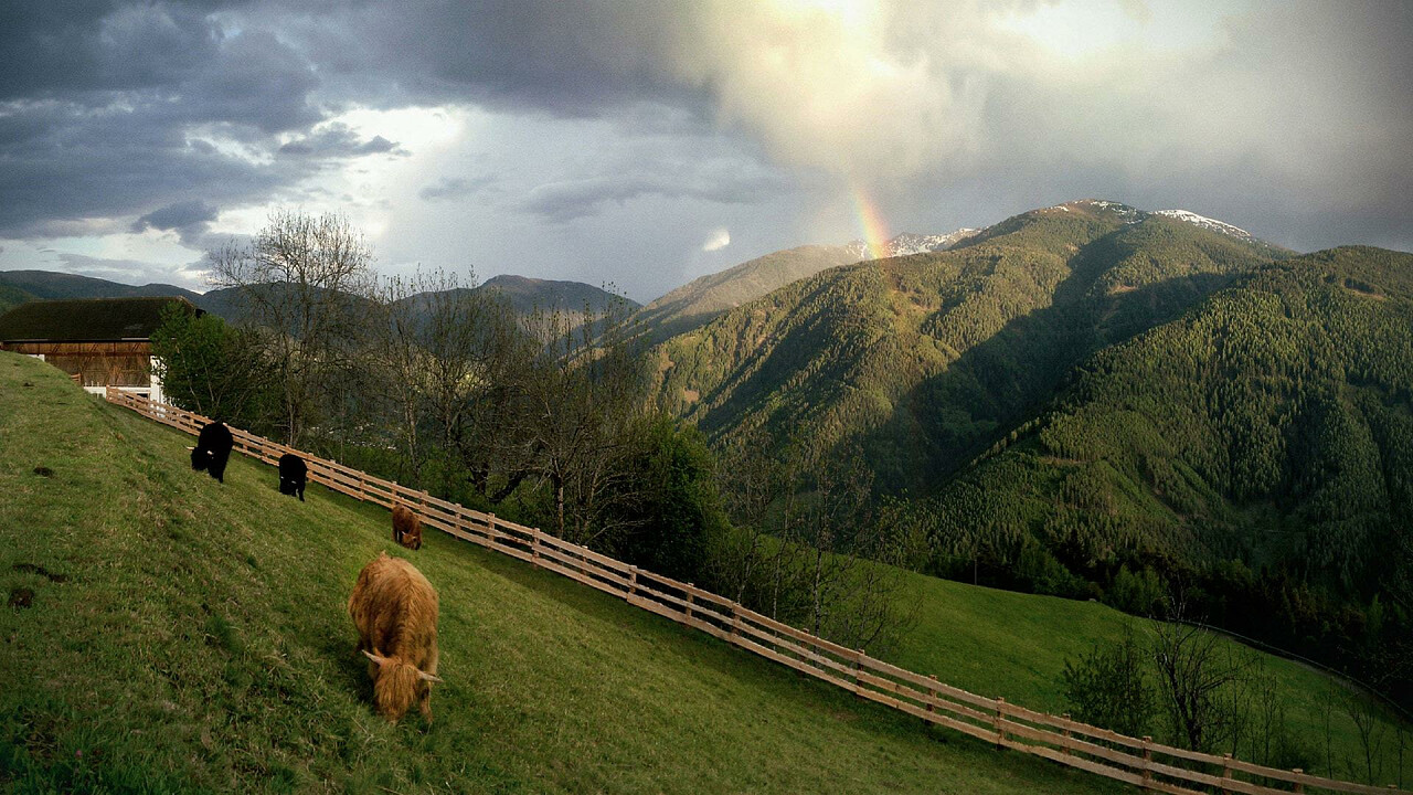 The Gruberhof with its flower-rich mountain meadows, the wood-fenced cattle pastures and the quaint forests, lies on sun-drenched Kreuznerberg at almost 1400m above sea level in the South Tyrolean community Lüsen. The locals call it "Gruiba". Because of its wonderful secluded location, far away from the noise of civilization, silence is our greatest asset.