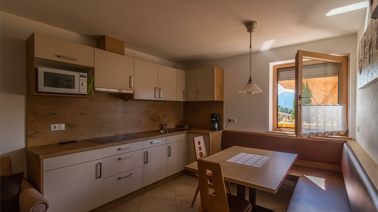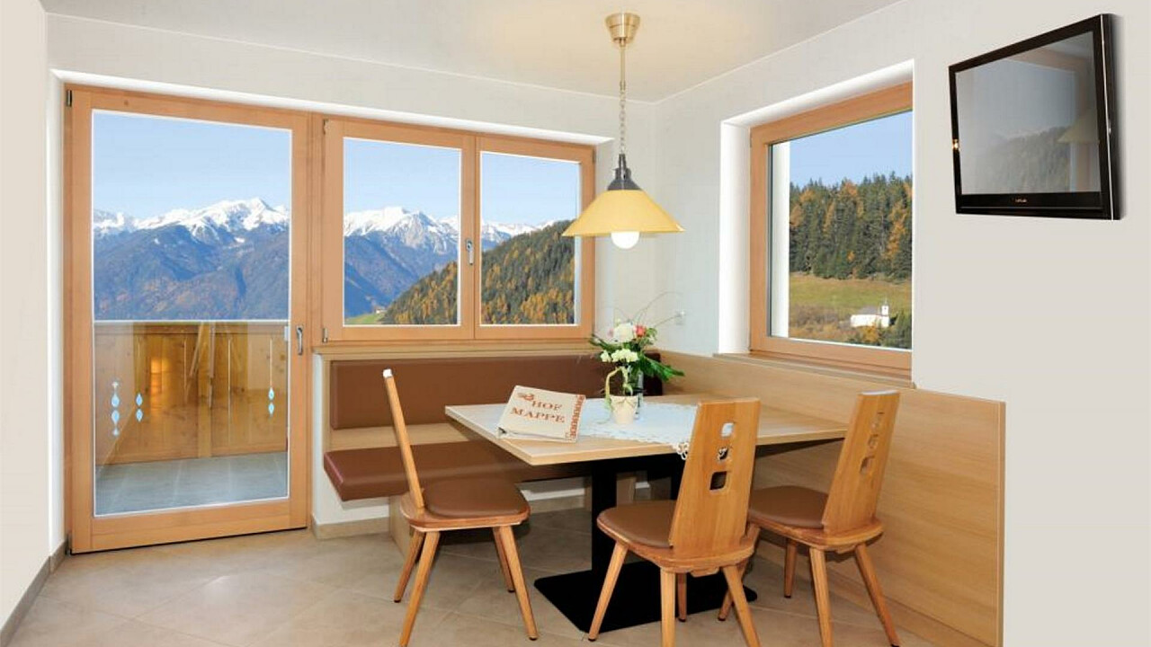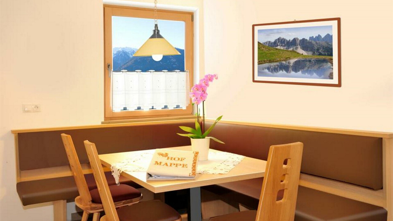 Thanks to the great location of the Scheaterhof you live below a natural paradise: the Lüsner and the Rodenecker Alm at 1530 m above sea level. Many wonderful hiking trails lead from the farm through the alpine mountain world. The view across the beautiful Natzner Hochplateau, the lower Eisacktal and the surrounding mountains can enjoy you every day. The Lüsner mountain is also a true all-rounder during your ski holidays in winter. The clear mountain air is a boon as well as the farm's own products. The three spacious apartments are located in the new farmhouse. With a lot of wood and other natural materials we are able to preserve the typical South Tyrolean establishment way and to unite this harmoniously with modern elements.