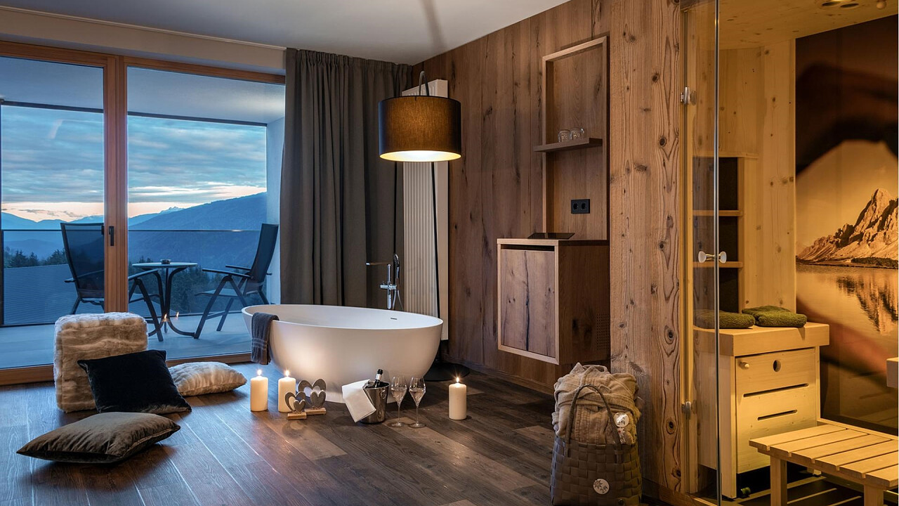 Hotel Edelweiss is the perfect retreat for a holiday with your partner, where you can relax in the fabulous world of saunas and taste delicious South Tyrolean specialties. Located a 5-minute walk from the center of Maranza and the Gitschberg Jochtal ski lifts, the hotel boasts a privileged location. After an outdoor day, enjoy the sweet idleness. For romantic moments, the suite with canopy bed is the real jewel. A vacation at Edelweiss is an escape from reality to spend unforgettable moments with your soul mate.