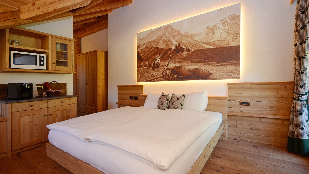The restaurant suggests the local dishes of Moena, prepared with genuine homemade products such as cheese, yoghurt and cold meats, served with selected Trentino wines and further local specialities.