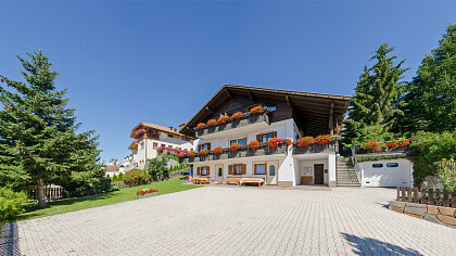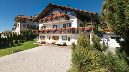 Our house is situated in a tranquil sunny position at the end of a cul-de-sac, only 100 meters from the village center. This place offers a fantastic panoramic view on the surrounding mountains of the Dolomites and is an ideal starting point for walks, hikes and climbs in the mountains as well as for trips to the cities of Meran and Bozen or to the Lake Garda.