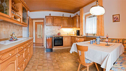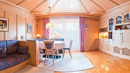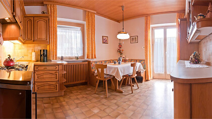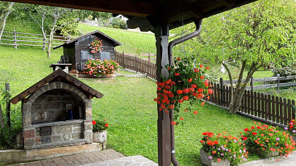 Our apartments are fully equipped and our guests can use the private car park or the garage, the barbecue and the washing machine. You can relax in the sun on our deck chairs and benches with tables in the garden or on the terrace. In winter you can leave your skis and ski boots in our heated drying room. The host invites you to a welcome drink in the traditional cellar.