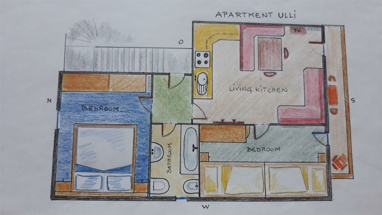 Our comfortable apartments in tyrolean style, suitable for 2-5 people, are well and completely equipped. SAT-TV, free WI-FI, dishwasher and washing facilities are at your disposal. From the southern balcony you enjoy a magnificent view over Alpe di Siusi, Sella and Sassolungo. Ski room with ski boot heater for our winter guests. Baby-bed and baby-chair on request.