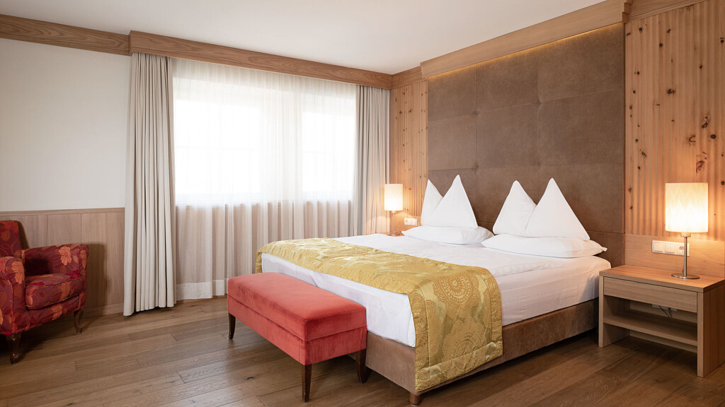 At ADLER Spa Resort DOLOMITI luxury and simplicity, tradition and modernity blend in the rooms and interiors furnished with natural materials. The elegant wood rooms and suites are equipped with bathroom/WC, telephone, an ADSL Internet access and a digital TV with Video Cinema, minibar, safe and hairdryer.