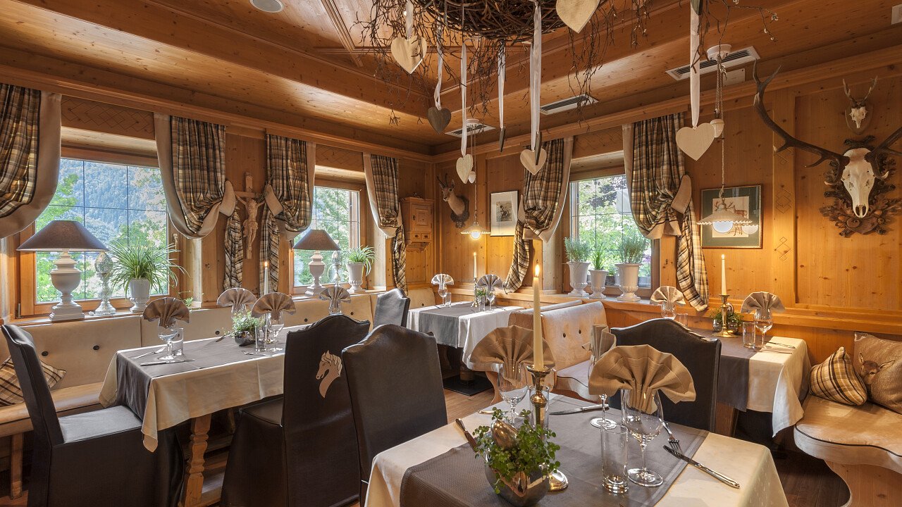 The restaurant offers an excellent Italian and South Tyrolean cuisine, international specialties and fine wines. Hearty breakfast buffet with healthy products, 5 course à la carte gourmet menu and a buffet of salads and desserts.