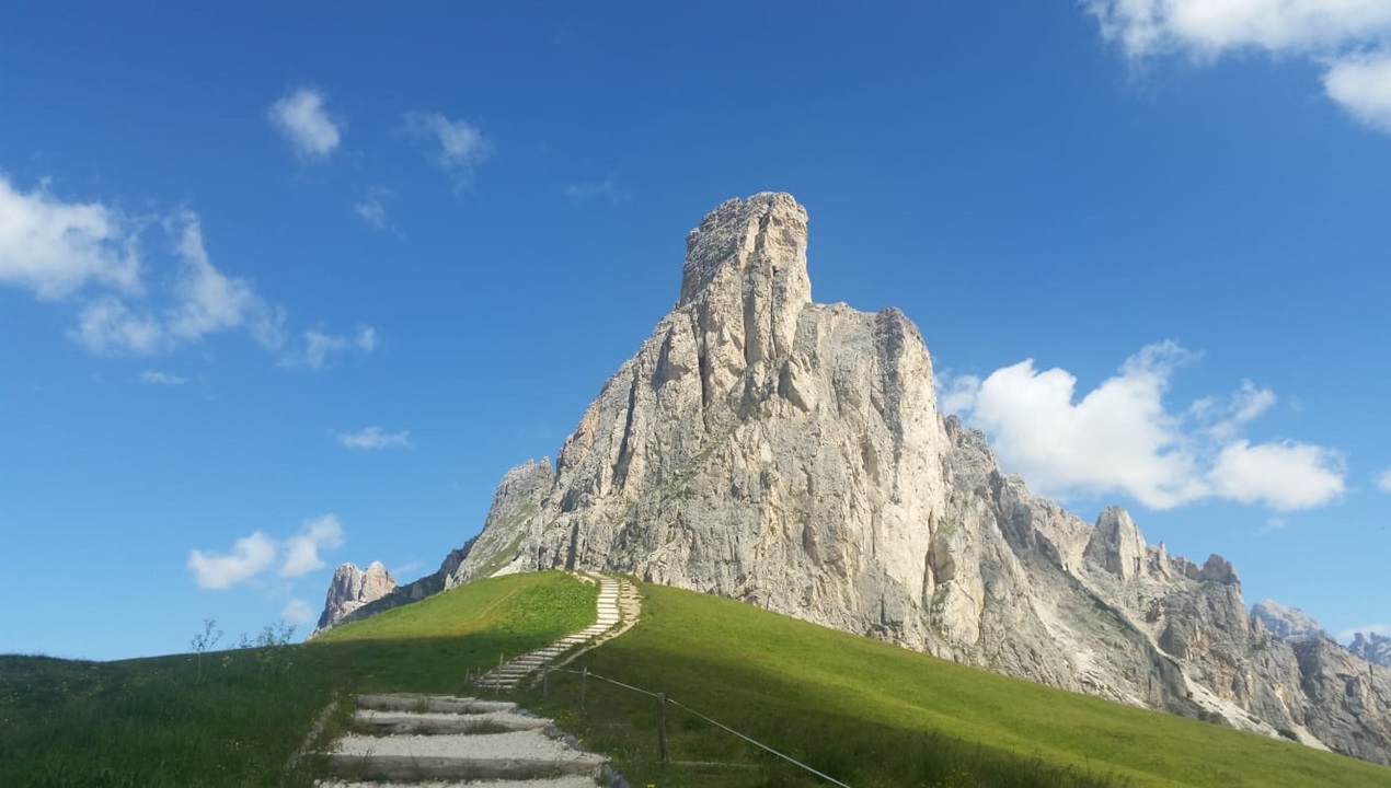 The journey begins in Cortina d’Ampezzo, the “Queen of the Dolomites”, where the elegant atmosphere of the historic centre introduces you to the beauty of the surrounding landscapes. From here, the road climbs to Passo Giau, one of the most spectacular viewpoints in the entire Dolomite range. Its high‑altitude meadows and surrounding peaks offer a first taste of the magic that will accompany the whole trip.
