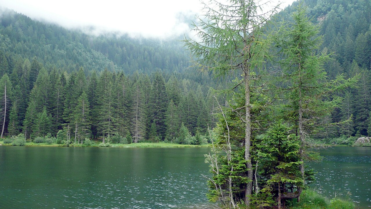 The Lake Barco lies in a glacial basin surrounded by alpine pastures, larch woods and gentle slopes that open towards the peaks of the Val di Sole. There are no mountain huts, bars or facilities here: just nature. The lake collects the meltwater from the snowfields above and gives rise to a small outflow stream that descends through a notch on the north‑western side. It is partly surrounded by a fir forest reflected in its clear waters, where alpine char can often be found.