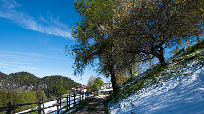 From the renovation of an over 300-year-old farmstead, the Fichtenhof guesthouse and restaurant was created at 1328 m a.s.l. in the small hamlet of Cauria, in the municipality of Salorno. Located in a sunny position, it is a paradise for families, where the little ones will feel at home, as well as for those seeking peace surrounded by nature. The Fichtenhof offers overnight accommodation with breakfast and half board (if specified in the booking).