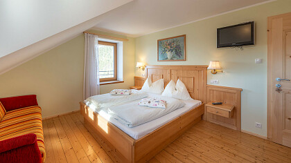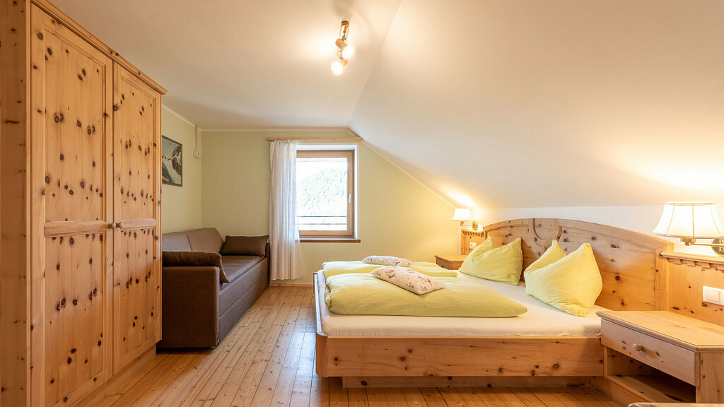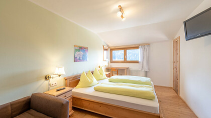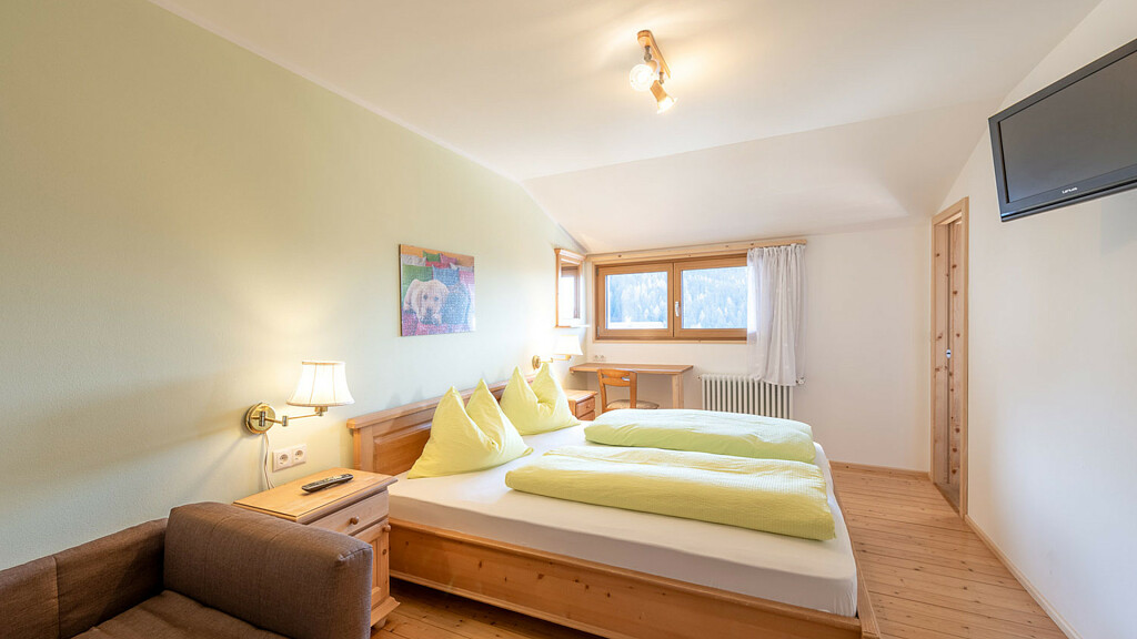 Furnished with wooden floors and furniture in typical South Tyrolean style, the double and single rooms are equipped with shower, toilet and TV. Fichtenhof also has a flat located on the ground floor in an adjacent building and equipped with a double room, living room, well-equipped kitchen, bathroom with bath and shower and garden. It is also possible to stay overnight with your own tent or camper van.