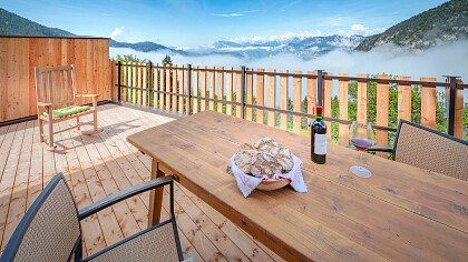 The facility also offers a Kneipp path, a Finnish wood-fired sauna in the garden, jacuzzi on the panoramic terrace and an infrared cabin.