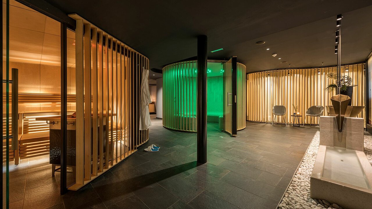 Pampering and relaxation time at the wellness center with: Finnish sauna, relaxation area, vital shower, indoor swimming pool, Turkish bath, 360 ° panoramic terrace, beauty treatments, and massages.