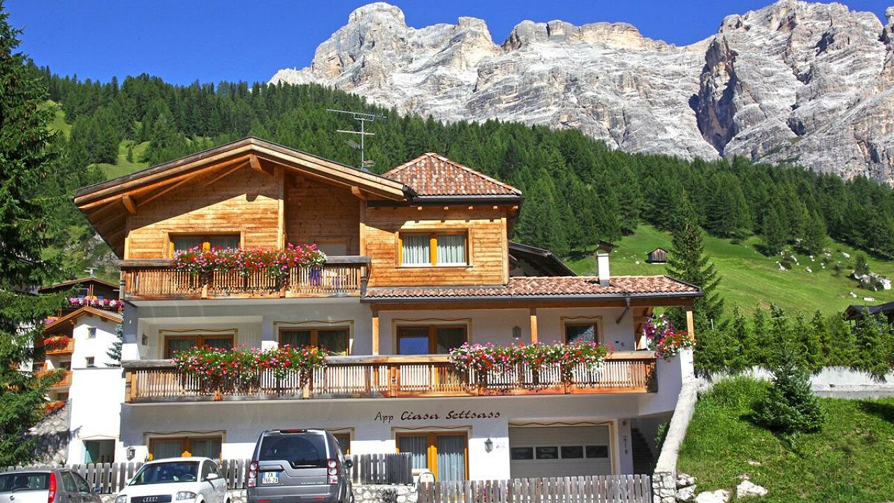 The apartments Appartamenti Ciasa Settsass are situated a 5 minute walk from the center of San Cassiano in Alta Badia (South Tyrol), and close to the lift facilities of Piz Sorega, leading to the slopes of the Sellaronda ski tour. While you can ski in winter; during the summer you can walk, hike, climb, bike or play golf.