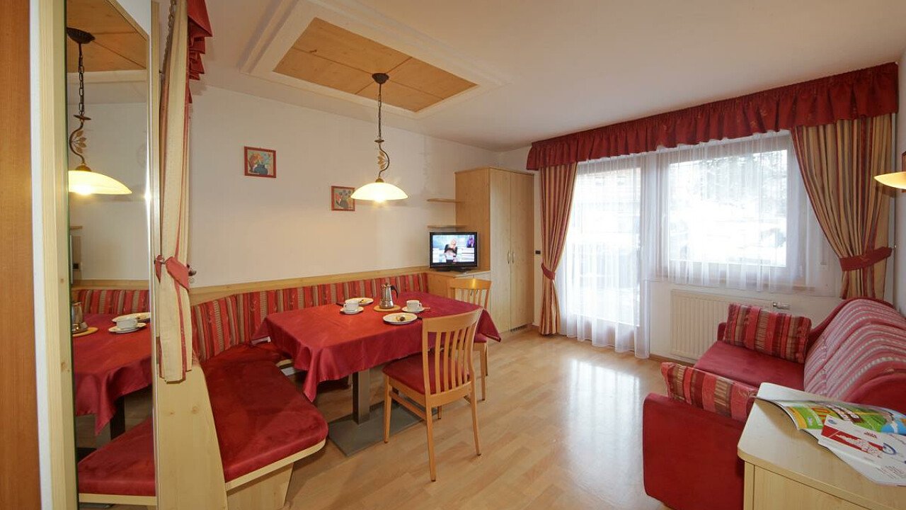 In the building of these apartments in San Cassiano you get also free Internet access, private outdoor parking and a sunny terrace. In winter you have at your disposal a ski room with boot heater. In summer: free garage for motorcycles and bicycles.