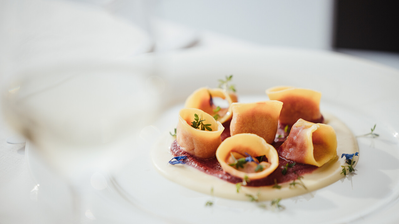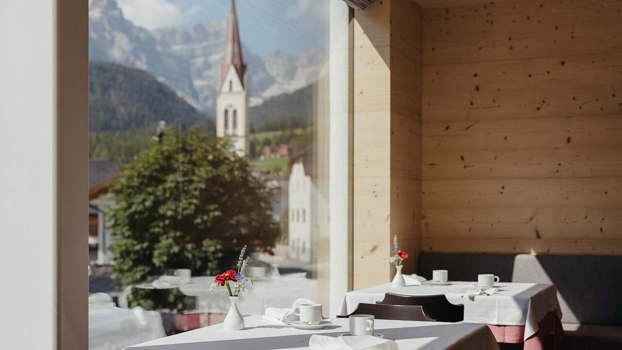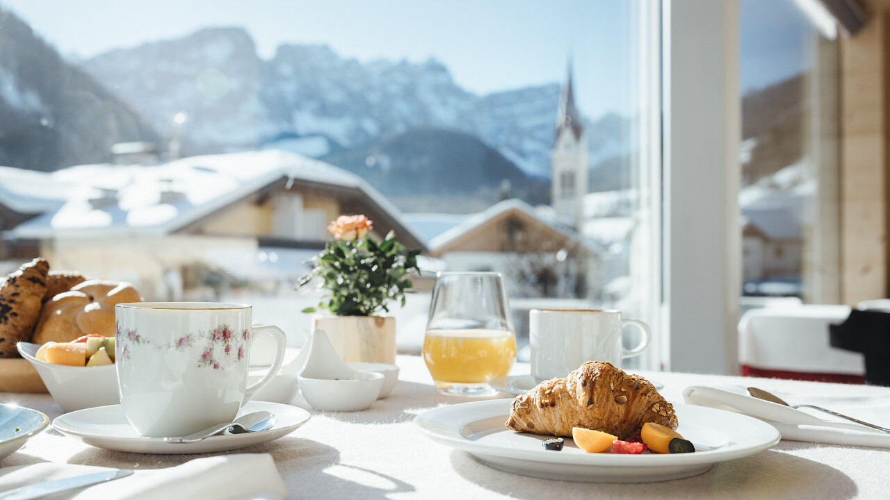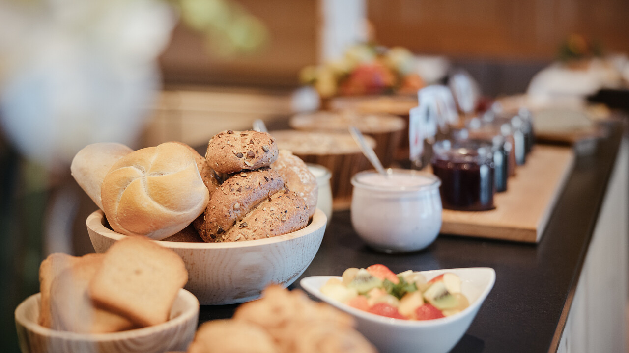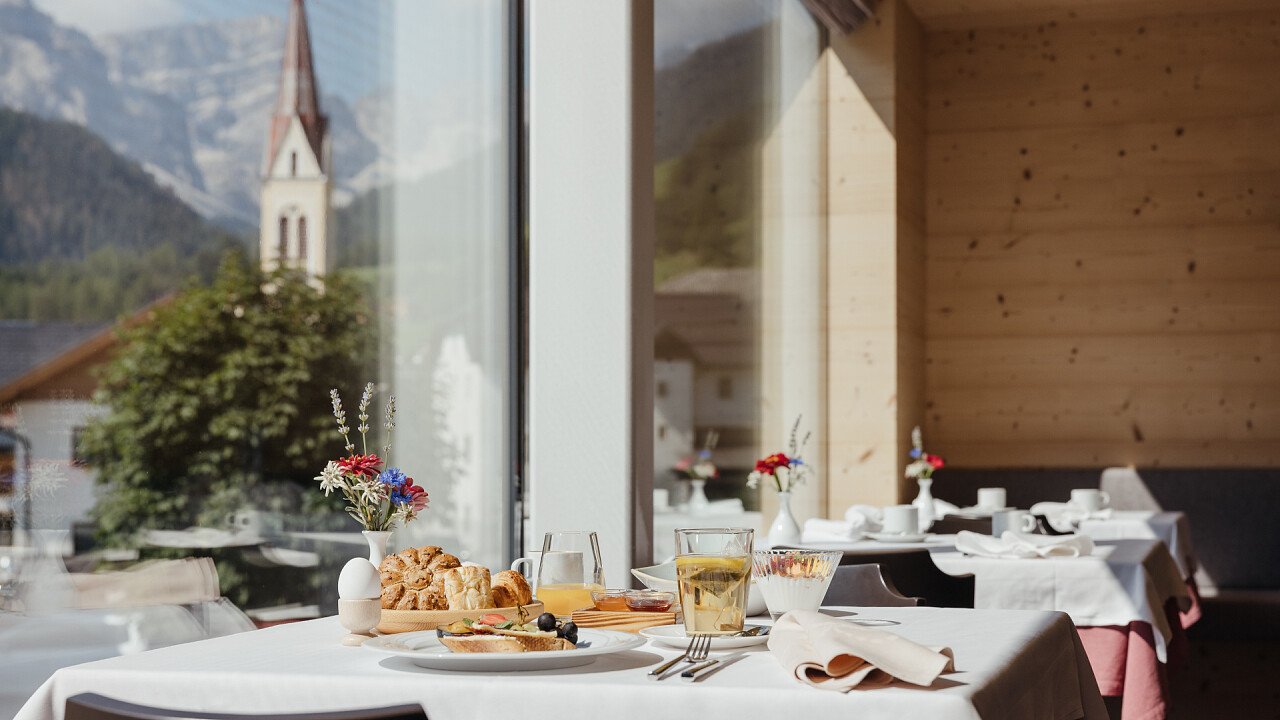At the Berghotel Sanvì a good morning starts with a delicious breakfast prepared with local ingredients. The butter, eggs, yoghurt, cheese and honey come strictly from their own land. Fresh milk is supplied by the dairy in Brunico, while the bread is fresh and crusty from the valley baker. Of course, homemade bread is not to be missed, along with cakes and jams made from freshly picked blueberries, currants, strawberries, apricots and plums. In the evenings, you can enjoy excellent local dishes flavoured with mountain herbs and accompanied by treasures from the home garden. There is also a natural stone fountain with fresh spring water in the dining room.