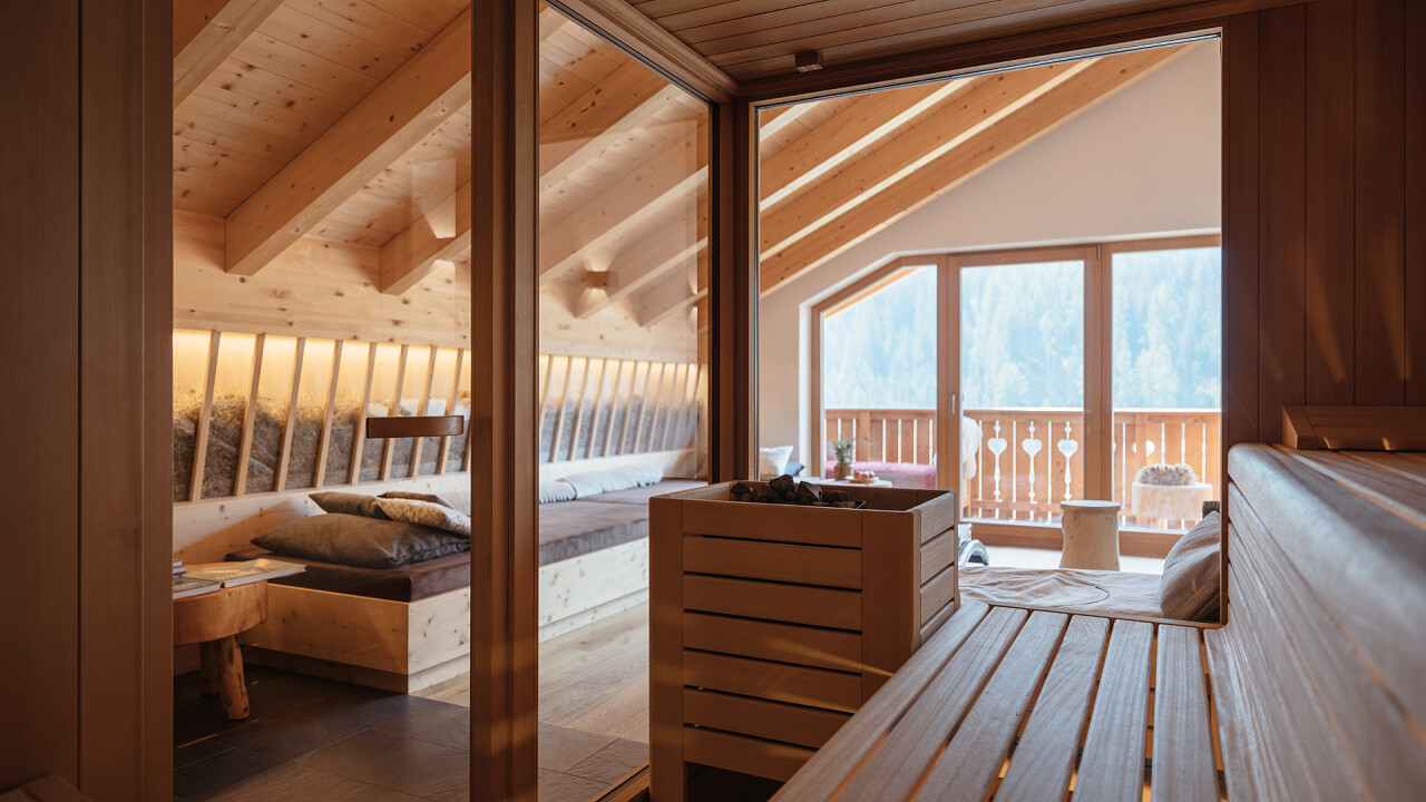 On the top floor of the hotel there is a small sauna area with a view of the mountains and equipped with a Finnish bio sauna, infrared cabin, relaxation area and herbal tea corner.
