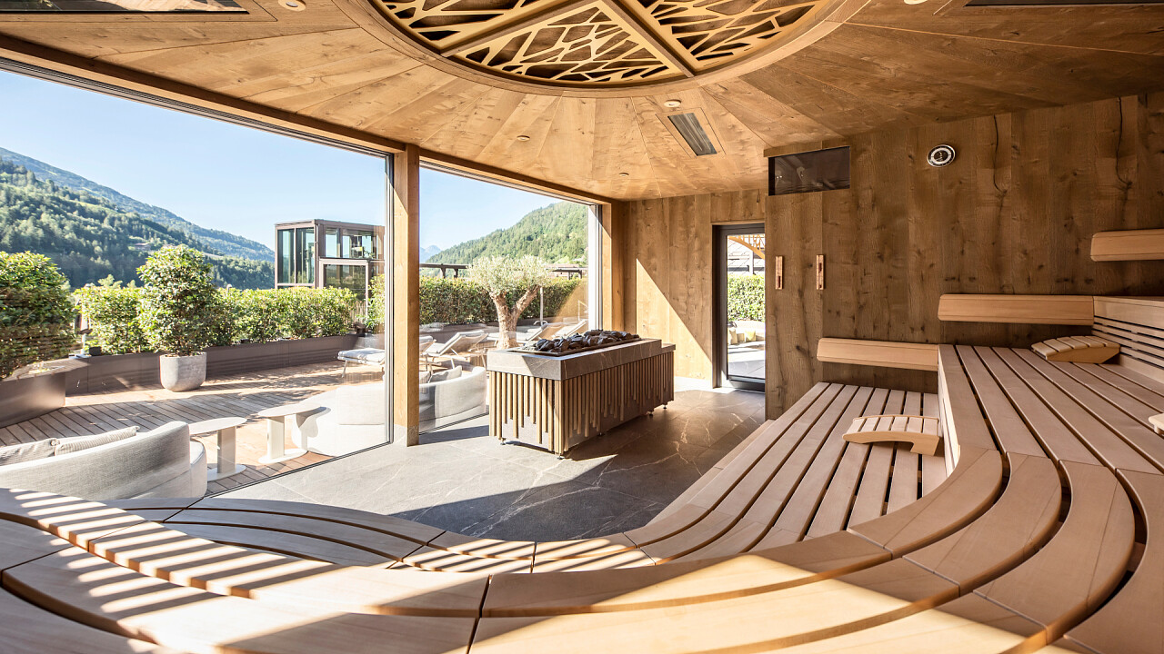 The new oasis of tranquillity for guests aged 16 and over. Inspired by the four elements - water, fire, earth, air - it is equipped with a Pirts bio-sauna, Pseirer stone ritual sauna, Fire lounge with wood-burning stove and lounge, a plunge pool and a sun terrace with nudist relaxation area.