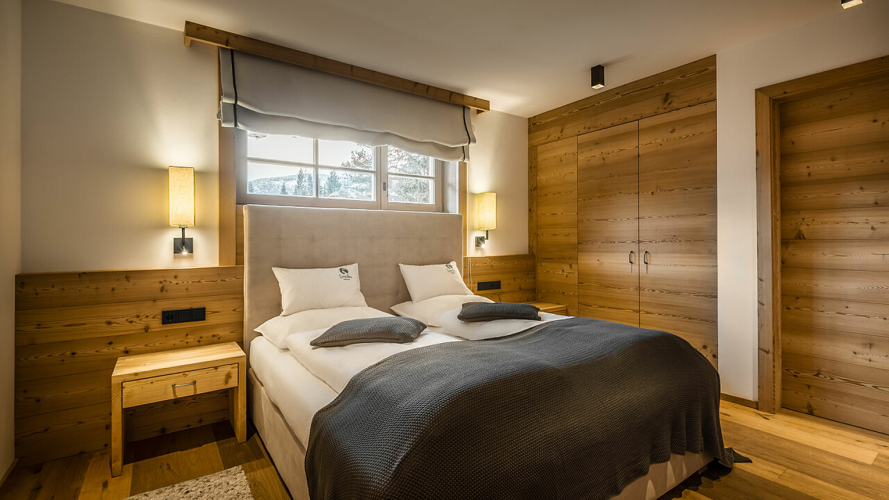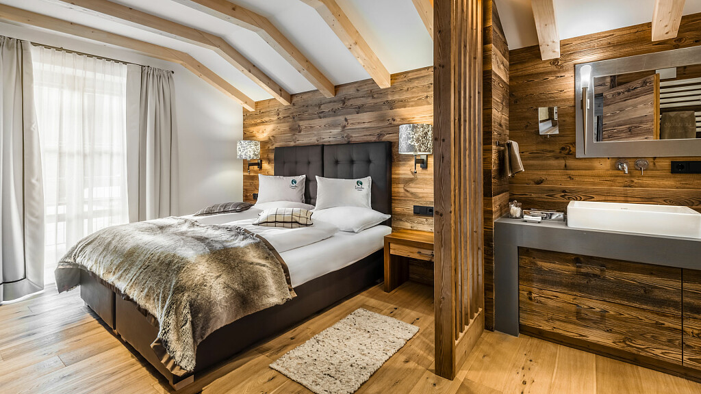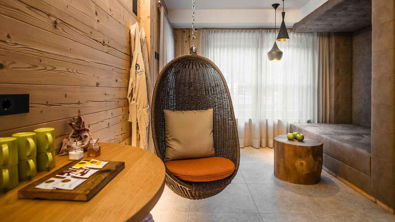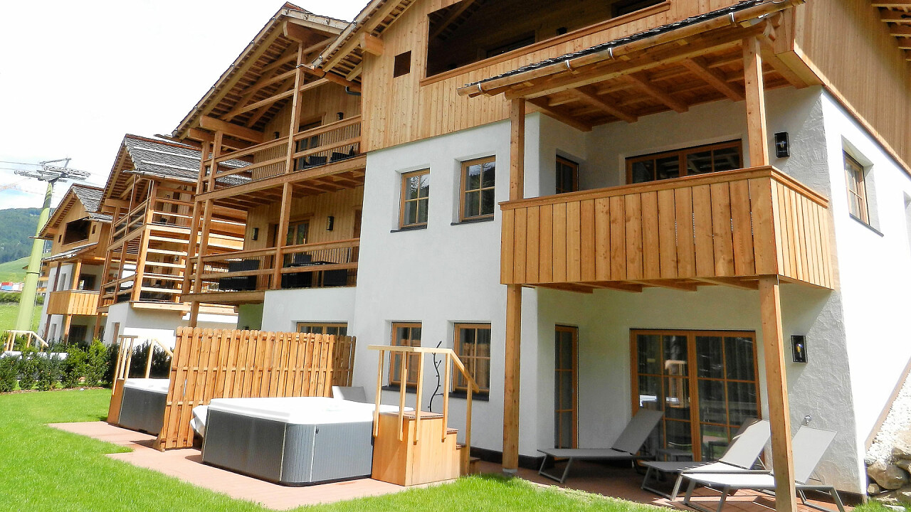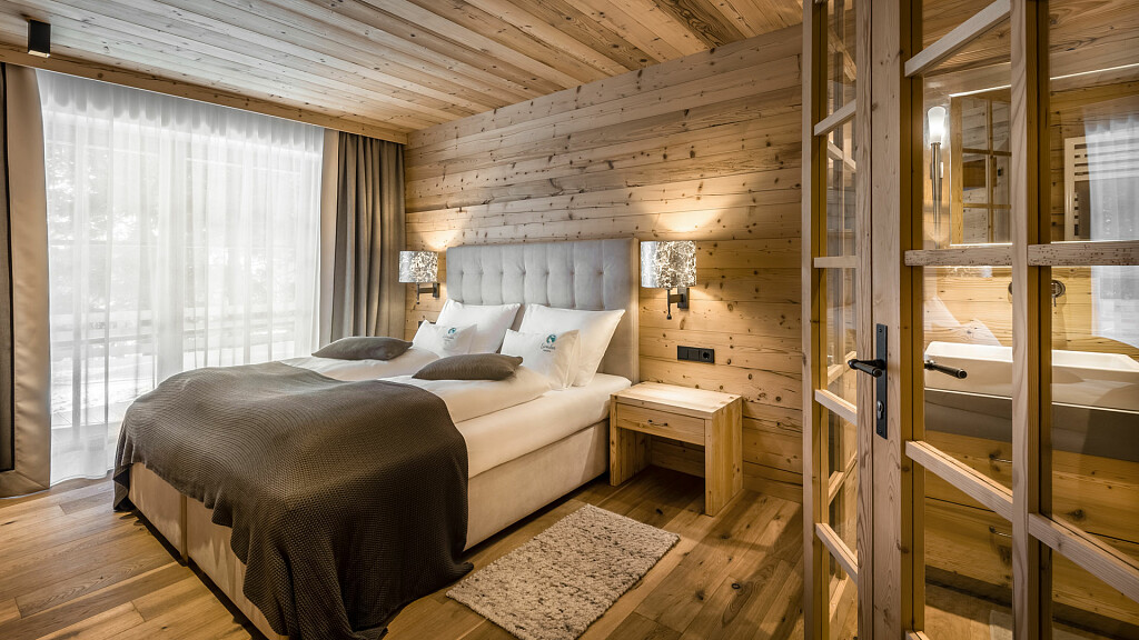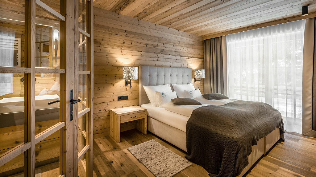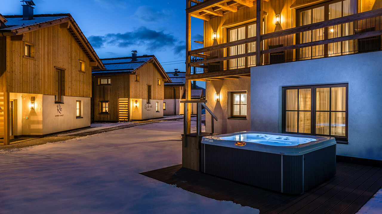 The design chalets furnished in wood offer comfortable rooms, a cosy open-plan living room and a well-equipped kitchen. Each chalet has its own private spa with sauna, sunbathing lawn and whirlpool.