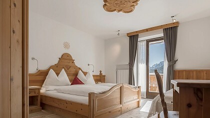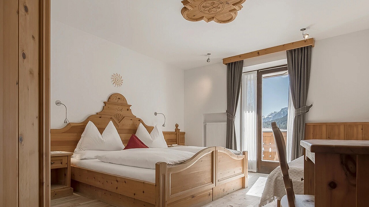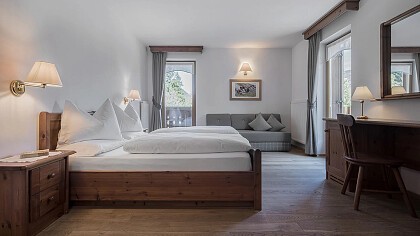 The elegant rooms furnished with wood feature: balcony, hairdryer, safe, telephone, bathroom with shower and courtesy set made in "Trentino/Alto Adige", HD TV, and hypoallergenic pillows. Family can enjoy spacious family suites with two independent communicating rooms.