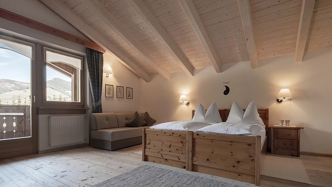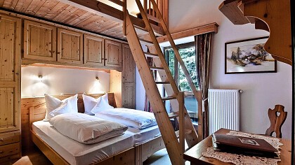 Staying in the dolo-mythically designed and comfortable rooms of the Cirmolo Chalet Suite will be like living in a tree...