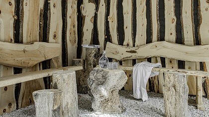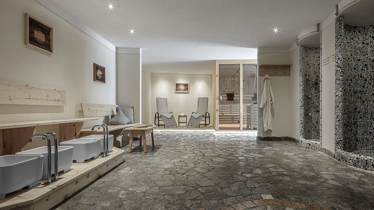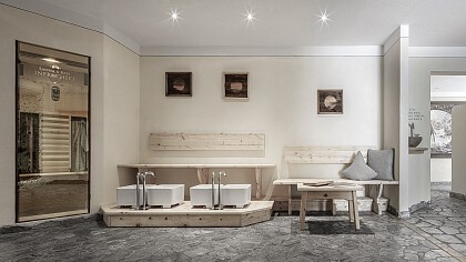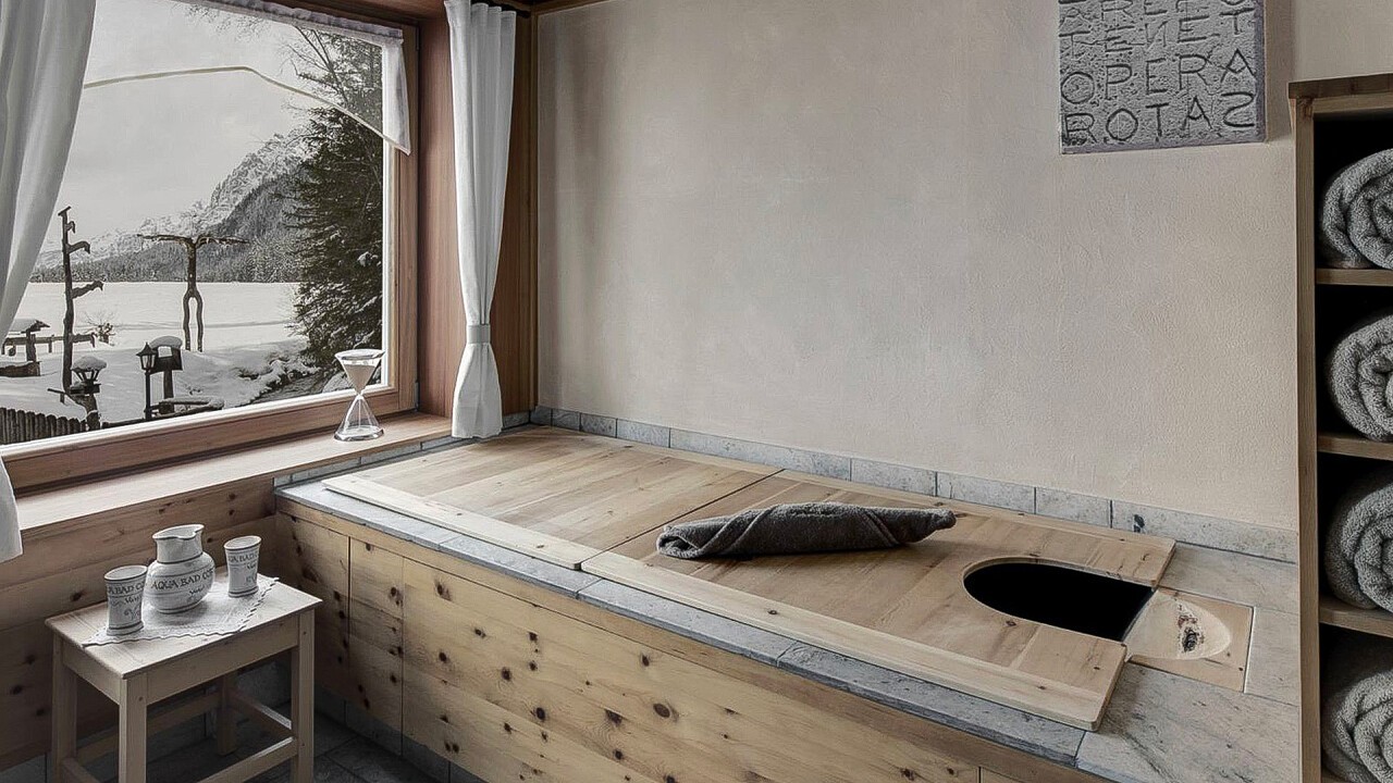Staying in this typical structure means finding ones physical and mental well-being, while in harmony with nature, and surrounded by enchanted woods, the sounds of the stream, and the imposing dolomitic summits. An oasis of peace and tranquility, where guests can experience the exclusive Sulphur baths in the world's first silver quartzite and Swiss Pine filled with beneficial mineral waters.