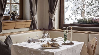 For a good awakening, a delicious breakfast awaits you with home-made cakes, apple juice, and fresh organic milk, jams, yogurt, spring water, South Tyrolean bread, and a great coffee. In the restaurant you can also enjoy a delicious dinner based on fresh, genuine, and organic ingredients that vary according to the seasons. Refined South Tyrolean wines will accompany each sublime culinary delight.