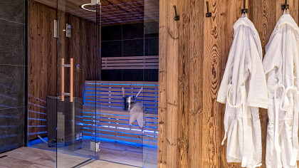 Peace and quiet await in the new wellness center equipped with Finnish sauna, Turkish bath, infrared cabin, and relaxation area.