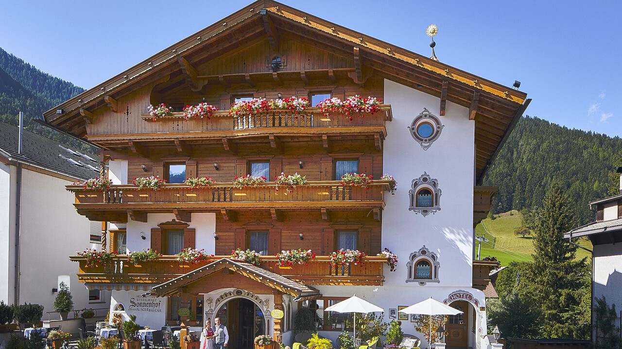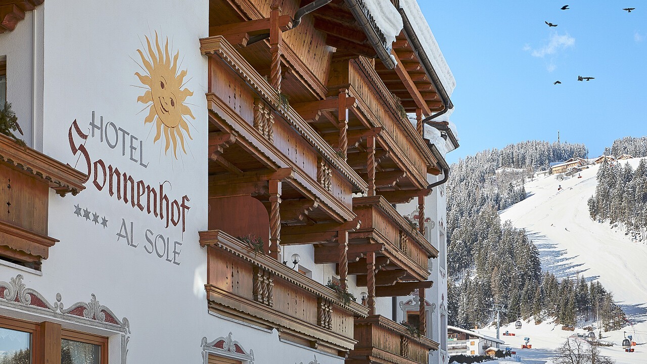 Hotel Sonnenhof is located in San Vigilio di Marebbe, just 200 m from the ski slopes of Plan de Corones, South Tyrol's no. 1 ski area, and at the gateway to the Fanes-Senes-Braies nature park.