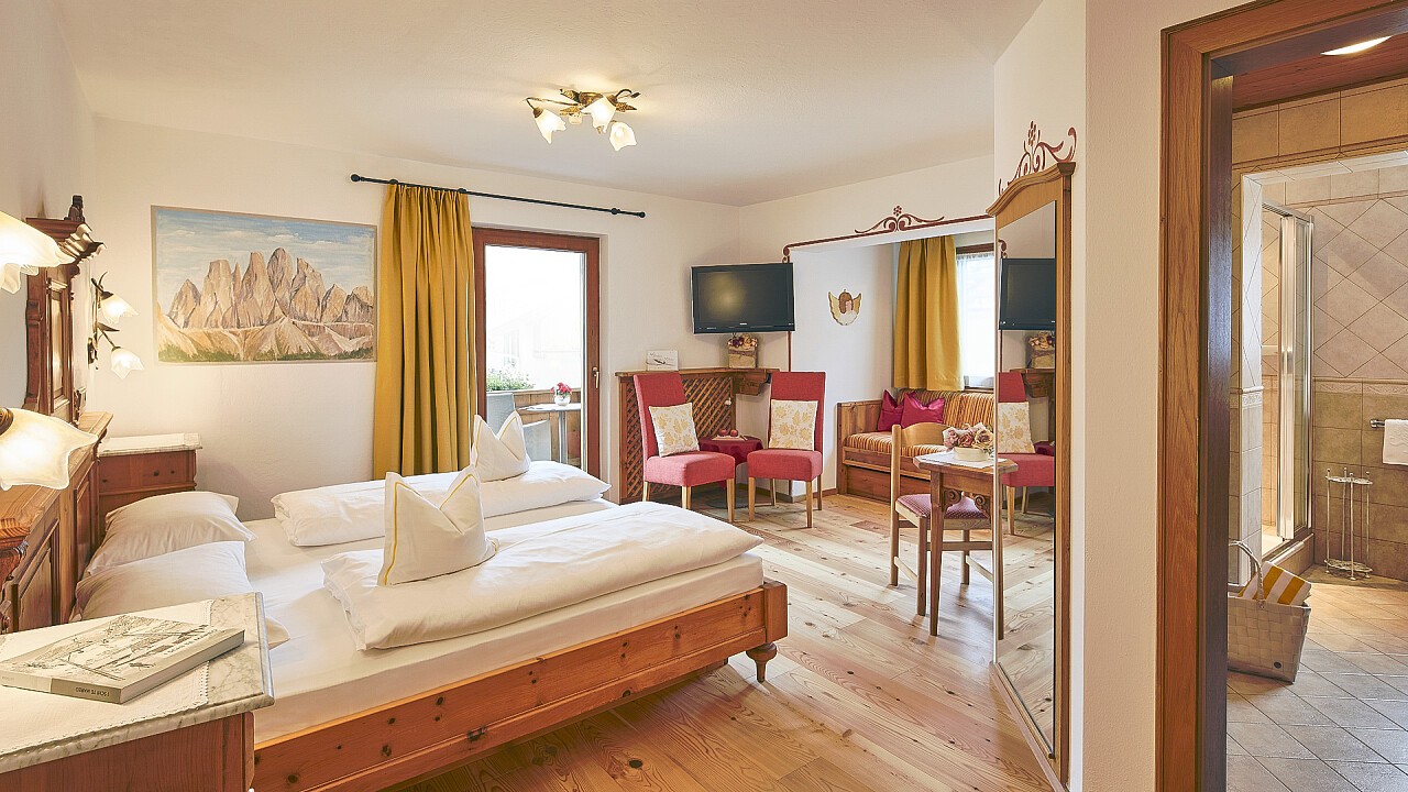 When you wake up, start your day off right with the rich breakfast buffet with organic corner. In the restaurant, open daily for lunch, you can enjoy sublime dishes of local and international cuisine accompanied by a wide selection of wines from the cellar. Dietetic, vegetarian, gluten-free or special dishes for children are available on request. The hotel staff is happy to entertain you with aperitifs with live music twice a week and Ladin dinners in perfect South Tyrolean style in the atmospheric Romantic Wine Cellar. Dinners in the forest are also organised.