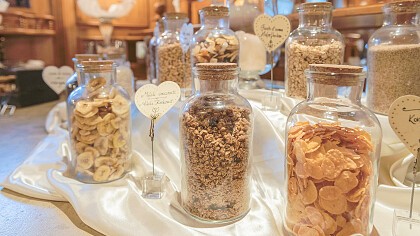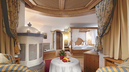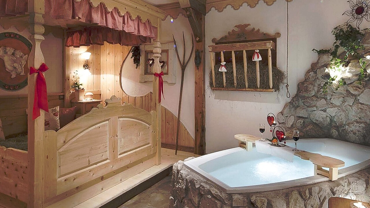 The Hotel Sonnenhof is the ideal location for a romantic, relaxing holiday. The rooms and the Stuben Suite with tiled stove offer maximum comfort for your rest. Enjoy the dream of an aromatic candlelight hay-bath with a glass of hay schnapps and relax in the warm hay bed, enjoy a massage in your room or relax in the private spa for your exclusive use with a bottle of sparkling wine, some fresh fruit and dark chocolate. Finally, treat yourself and your partner to a thermal bath in the silver quartzite tub.