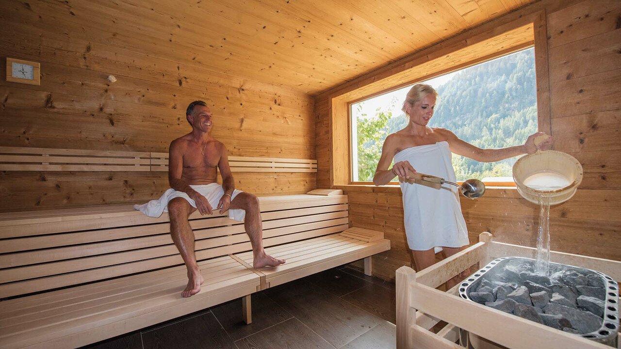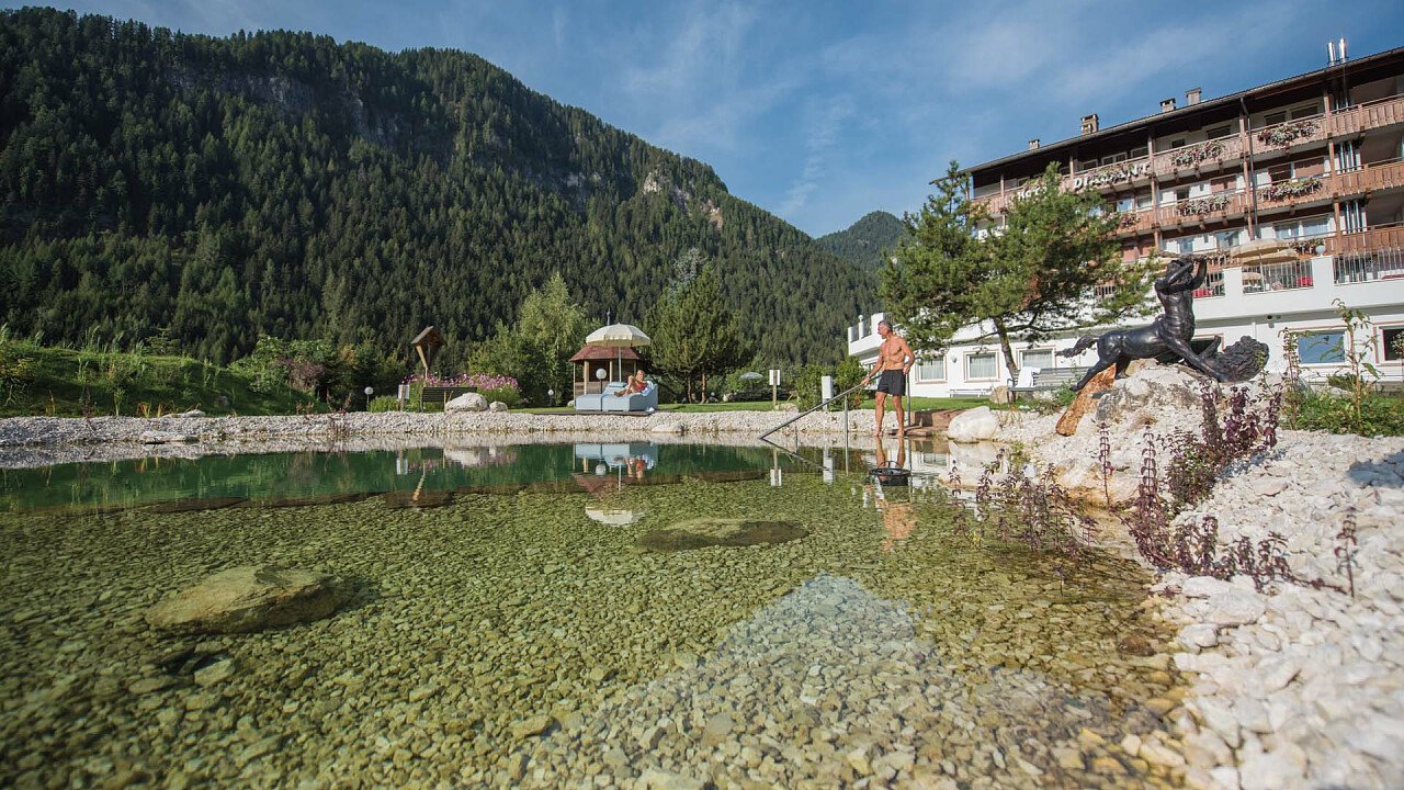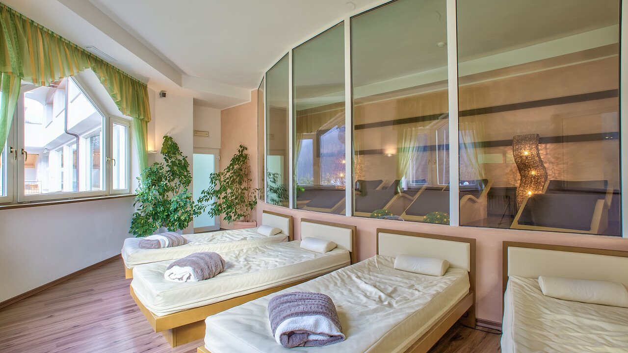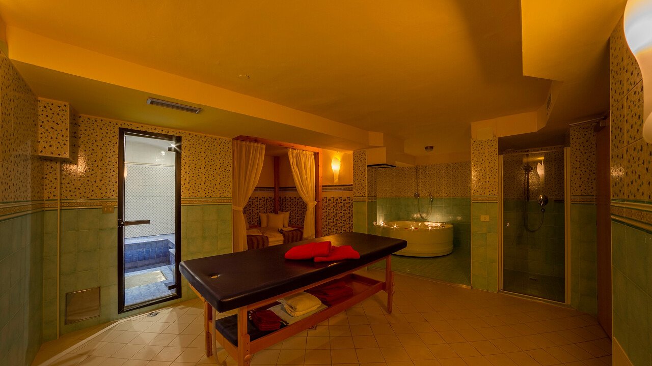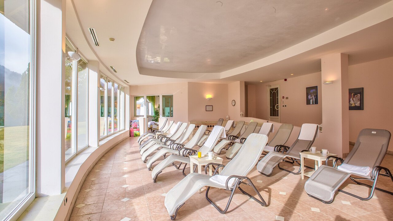 The Dona Dindia wellness center includes solarium, pools, outdoor whirlpool, tepidarium, Kneipp therapy pool, steam bath, saunas, heated outdoor swimming pool, natural bathing pond, beauty treatments and massages, fitness and relax area and private SPA.