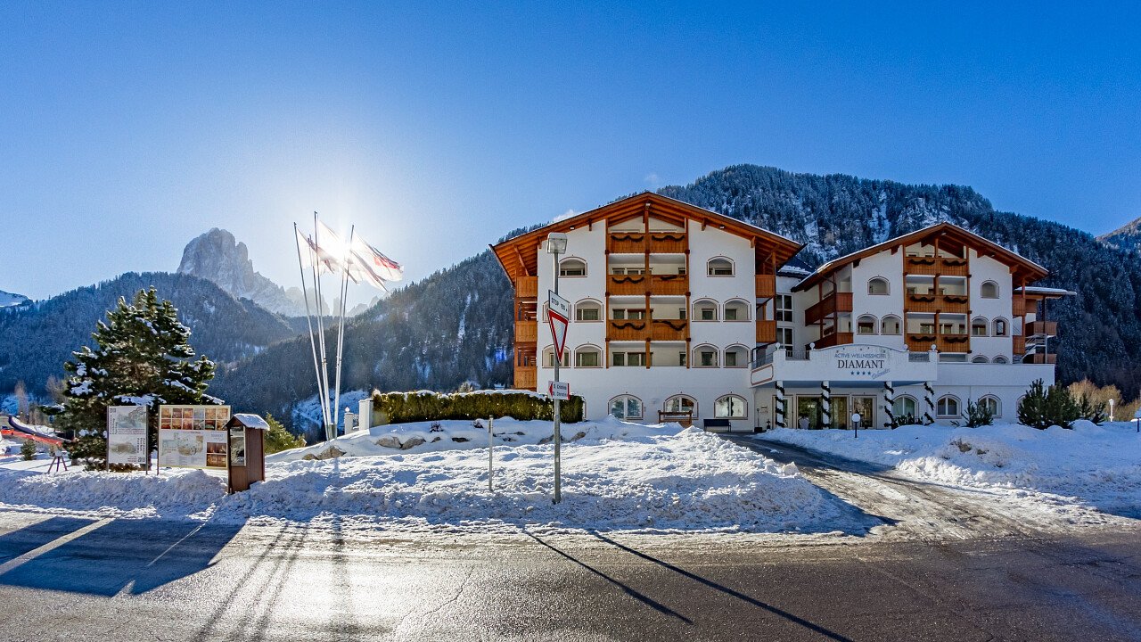 The Diamant Spa Resort is located in Santa Cristina, in the heart of Val Gardena. hanks to its panoramic position, you can enjoy a wonderful view on the Sassolungo.
