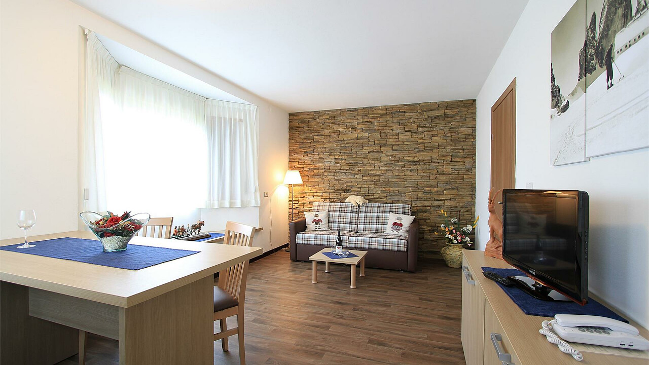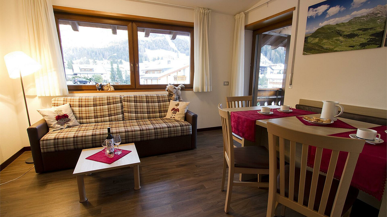 The Residence Ariola lies in a quiet and sunny position in the center of Selva near promenades and main skilifts of the area. The Residence Ariola is managed by our familiy in order to make your holiday as relaxing as possible. Our apartments offer comfort and quality. They are fully wood furnished, provided with TV, telephon, balconies or garden.