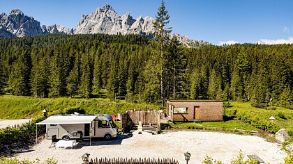 The Caravan Park Sexten, one of Europe's 10 best campsites, lies in Moso di Sesto, at the foot of the Three Peaks of Lavaredo, inside the Sesto Dolomites Nature Park and directly on the slopes of the Dolomiti Superski domain.