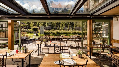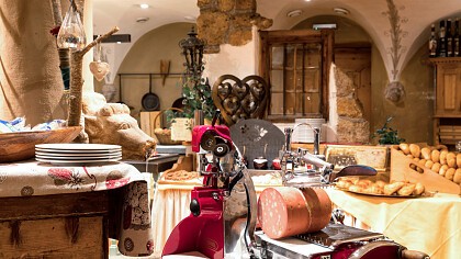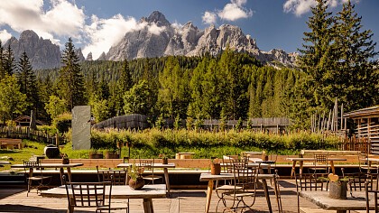 The gourmet area offers a selection of local and international dishes and fine wines, served in the restaurant, the Stube Happacher, the Taverna Sextner Almhütte, or the rustic Fienile.