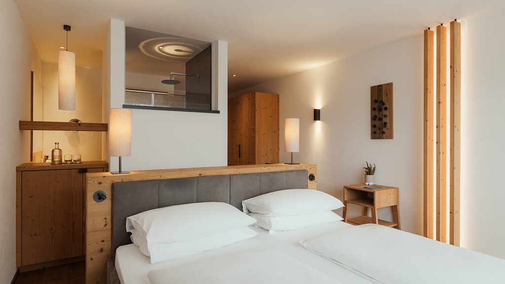 The Waldrast offers both rooms and flats, designed to suit your needs and holiday style. The rooms are small refuges of tranquillity and style, where every detail is designed for your well-being. Intimate, cosy spaces, illuminated by natural light filtering through the large windows, framing breathtaking views of the Dolomites. Here you can relax, recharge and savour the silence of the mountains, letting yourself be enveloped by the warmth of natural materials and an essential design that speaks of harmony and comfort.