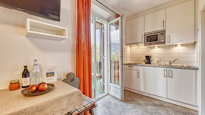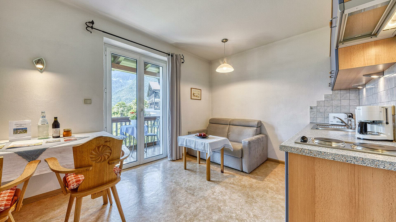 However, the village center is not far away: you can get there by foot in 7 minutes. The guest bus stops nearby and takes you to stores, restaurants, public facilities, the chairlift to Merano, the cable car to the Hochmut or to the starting points for many hiking trails.