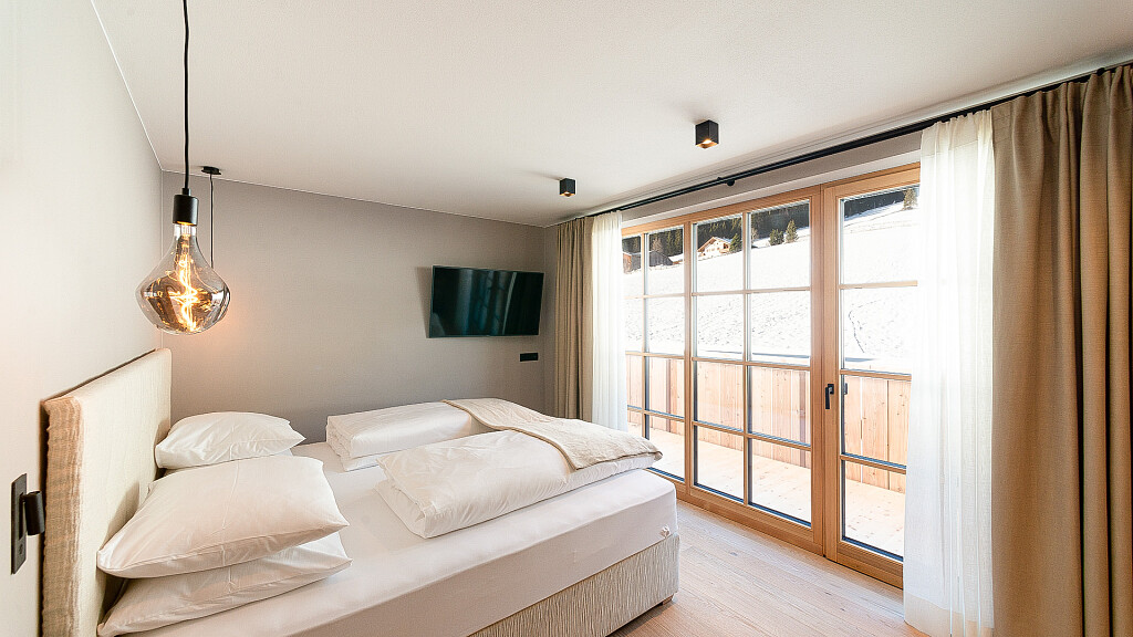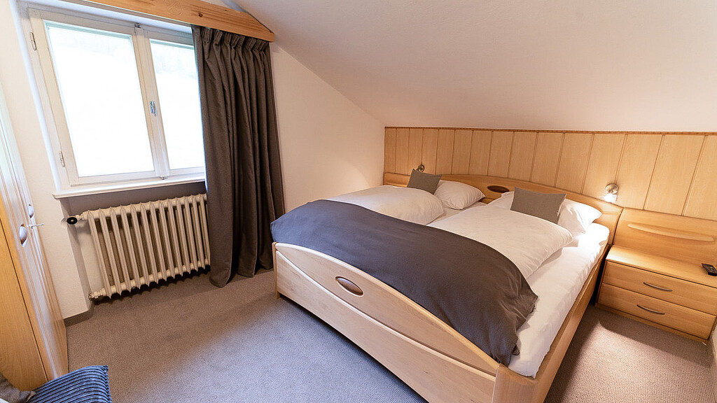 The cosy family room with carpeted floor, quiet, with mountain view, consisting of a double room and a children's room f...