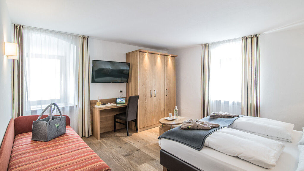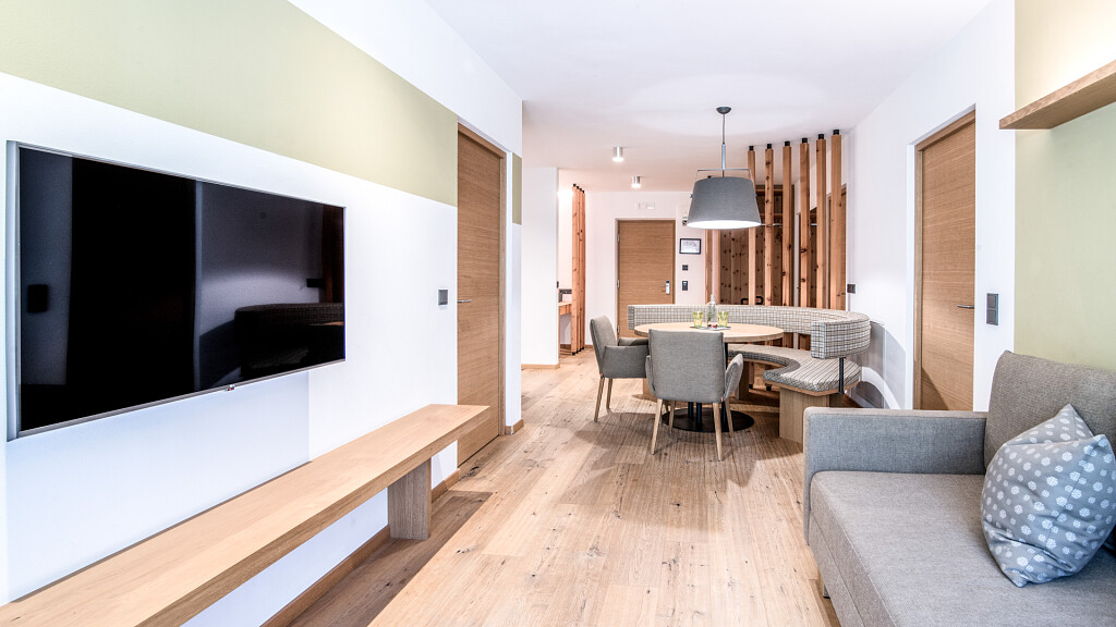 The rooms, studios and flats of the Sporthotel Zoll are furnished in natural wood and equipped with all essential services, guaranteeing maximum comfort and functionality for a relaxing stay.