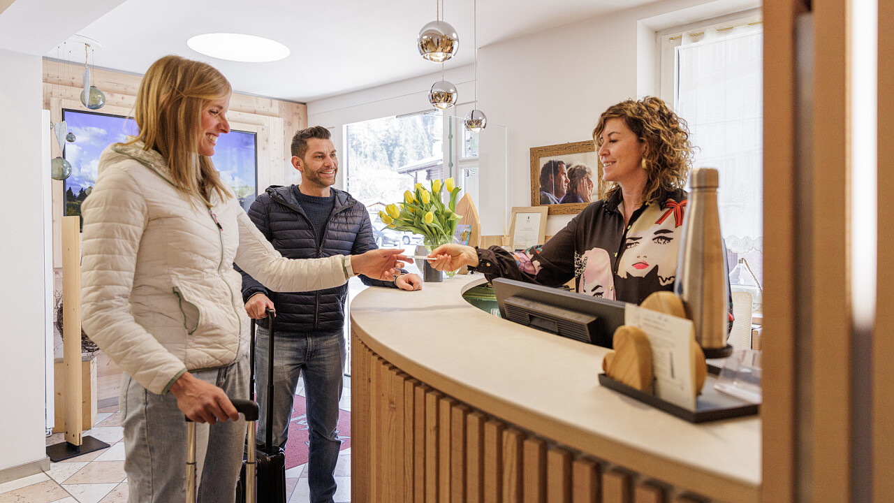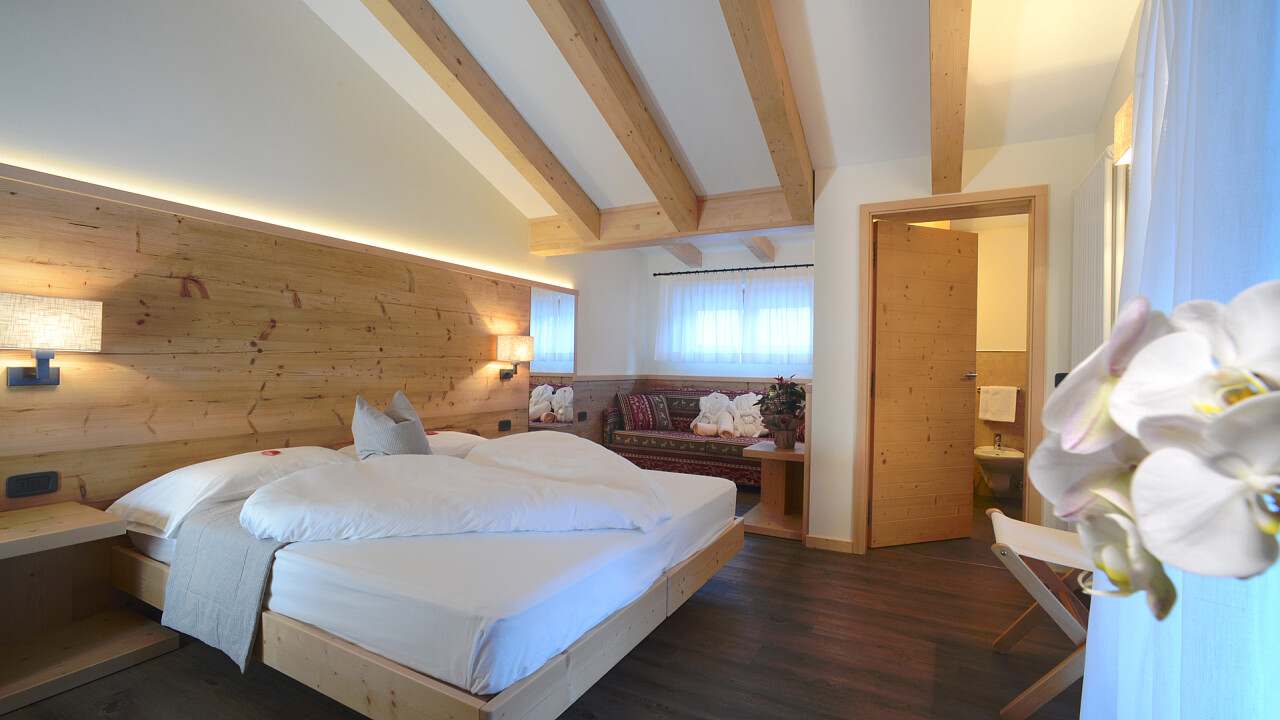 Moreover: lift, reading room, tv room, mountain bike, city bike and e-bikes rental, Nordic walking sticks for rent, waxing room, skiroom with skiboots dryer, tavern, garden, garage, parking, free skibus and Wi-Fi in the hotel. Accessible structure for people with disability problems.