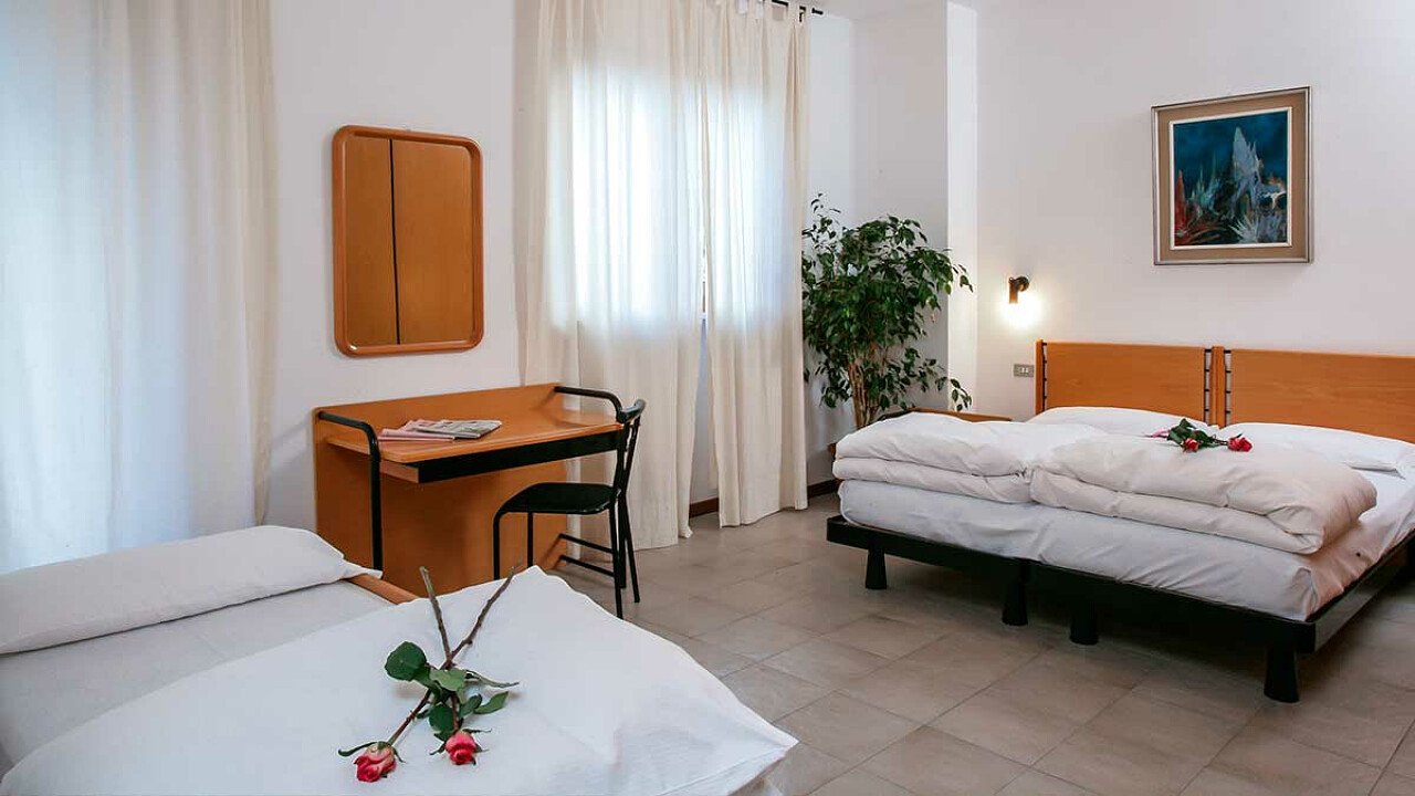 L'accogliente hotel offre confortevoli Family Room articolate in tre locali, due camere e un salottino, e dotate di servizi privati. A disposizione anche alcune camere tradizionali.
