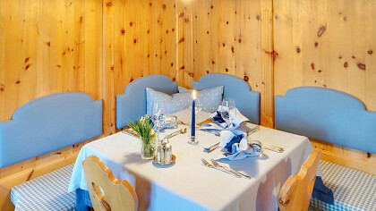 Il ristorante con vista sulle Dolomiti propone ricca colazione a buffet, piatti della cucina altoatesina ed italiana, accompagnati da vini pregiati nazionali e regionali.