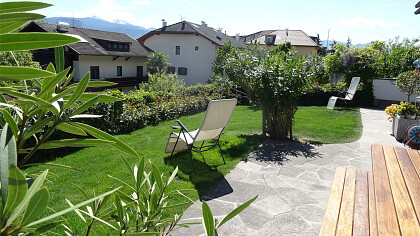 Nell'ampio giardino i nostri ospiti possono riposare nel sole, oppure godere i pasti all'aperto.