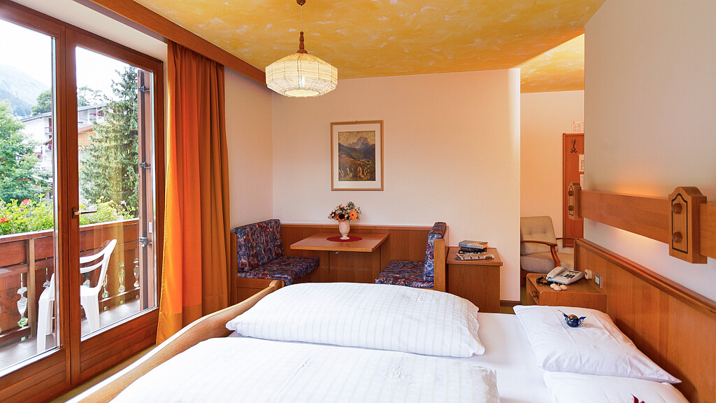 L’hotel offre tre tipologie di camere, Comfort, Superior e Junior Suite, arredate in legno e dotate di tutti i servizi, quali bagno con doccia, TV, Wi-Fi e set di cortesia.