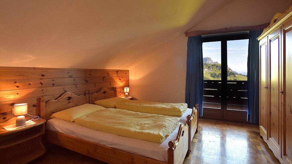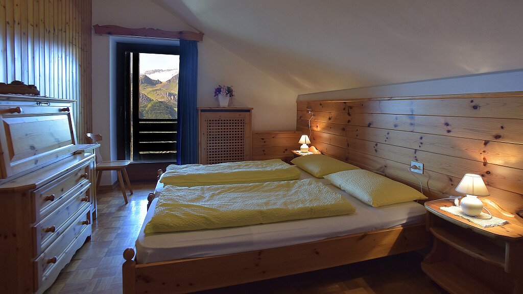 Pernottamento possibile solo durante la stagione estiva. Arredata in legno, la camera si dota di balcone, da cui si...