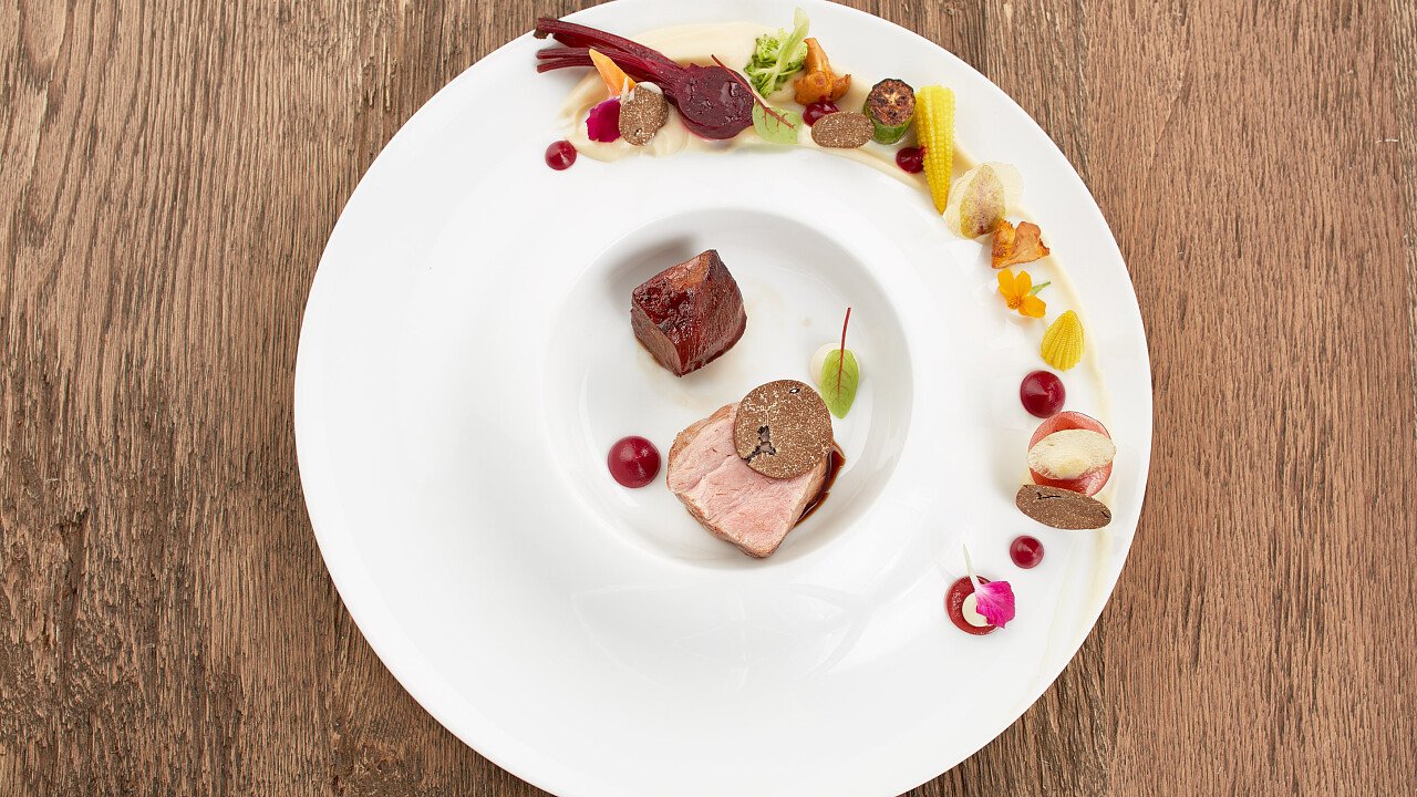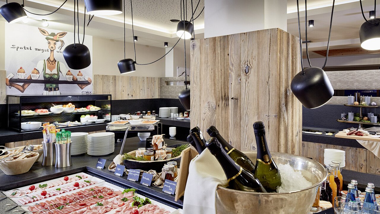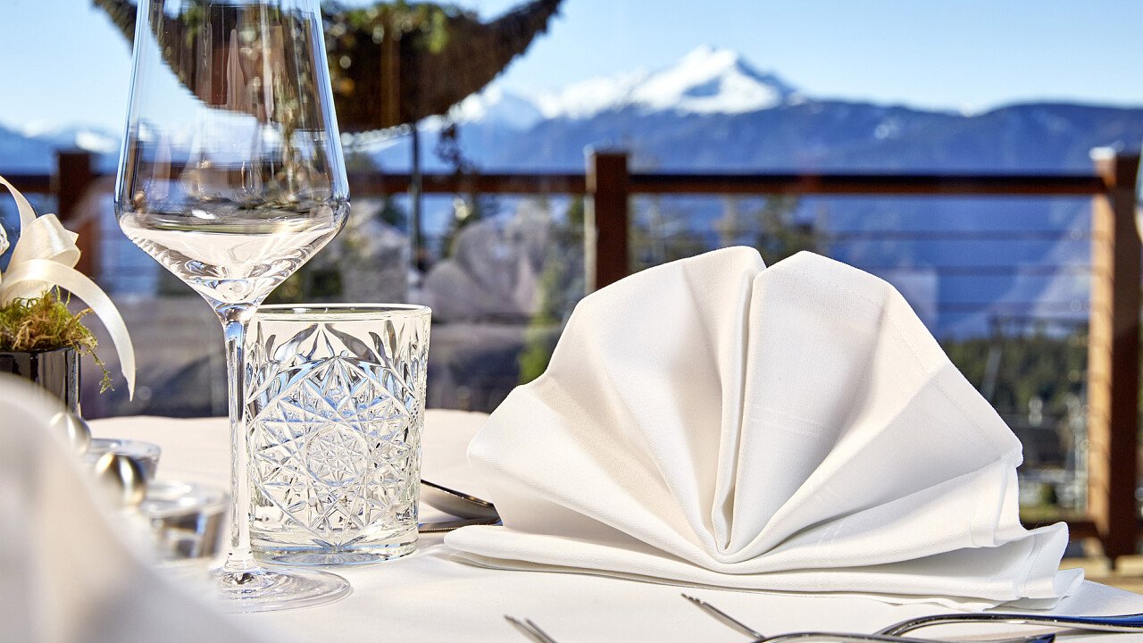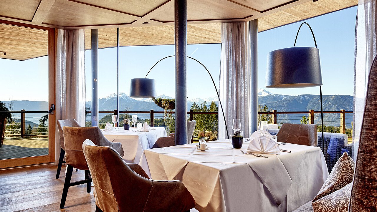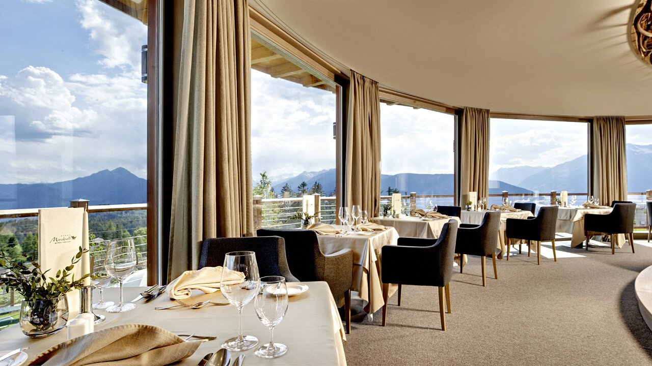 Al ristorante panoramico con terrazza lo chef preparerà deliziose specialità tipiche e squisiti piatti della cucina italiana abbinati a una raffinata selezione di vini della cantina. Con il servizio di pensione completa, gli ospiti potranno degustare una ricca colazione, brunch di mezzogiorno, buffet pomeridiano con torte e dolci, mix di insalate e cena à la carte da 5 a 7 portate. Particolare attenzione alle persone con intolleranze alimentari o diete specifiche. Vengono organizzate anche serate a tema e settimane culinarie.
