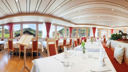 La sala da pranzo con ampie vetrate, propone specialità ladine, nazionali ed internazionali, preparati con prodotti freschi locali. Fornita cantina vini dove si organizzano degustazioni, compleanni ed eventi. Bar per aperitivi e dopocena, aperto anche al pubblico.